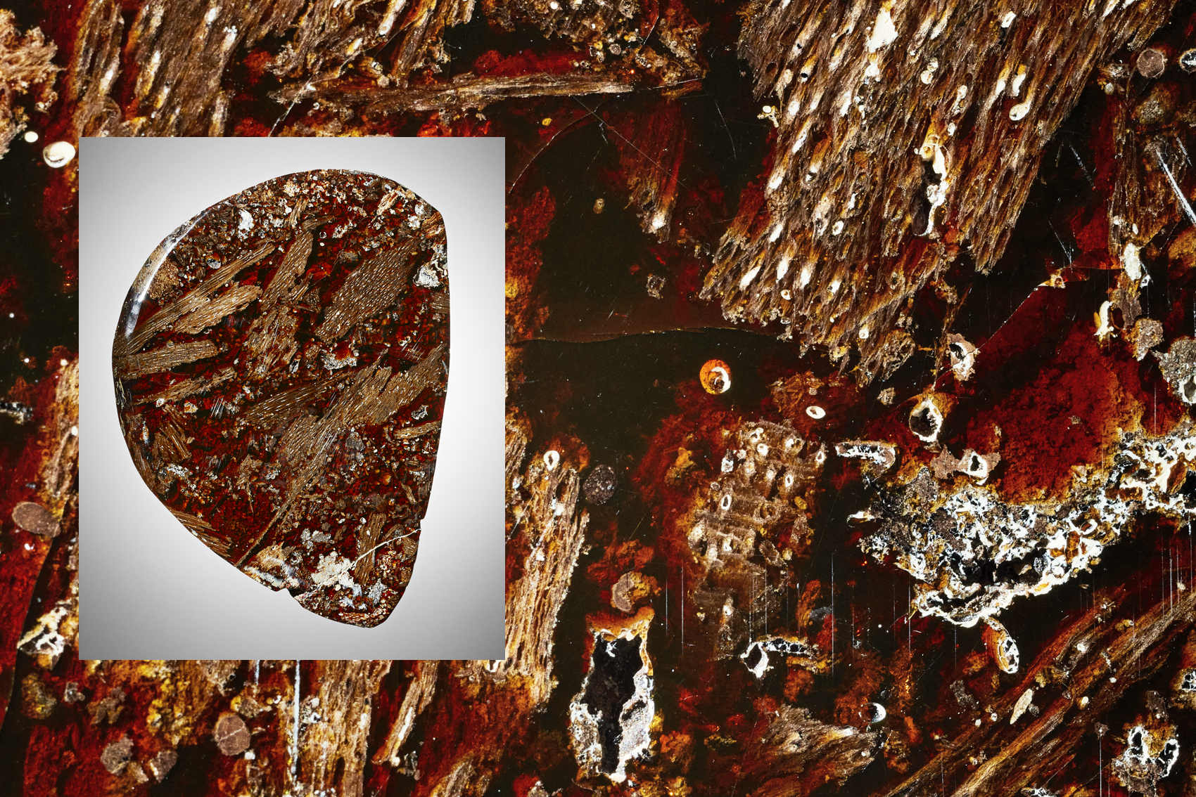 As resin trickles toward the ground, it often collects bark fragments and other debris. Microscopic examination of this prehistoric Dominican sample reveals that the structure of the wood within matches that of modern Hymenaea trees.