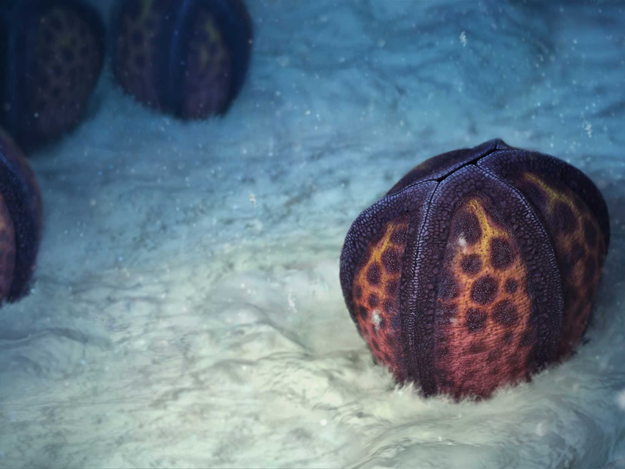 Most present-day echinoderms, which are found from the world’s coastlines to the ocean’s dark abyssal depths, have an internal skeleton. The exceptions are sea cucumbers and some species that live buried beneath the seabed. Their skeletons, like Yorkicystis, are formed by porous calcite plates.
