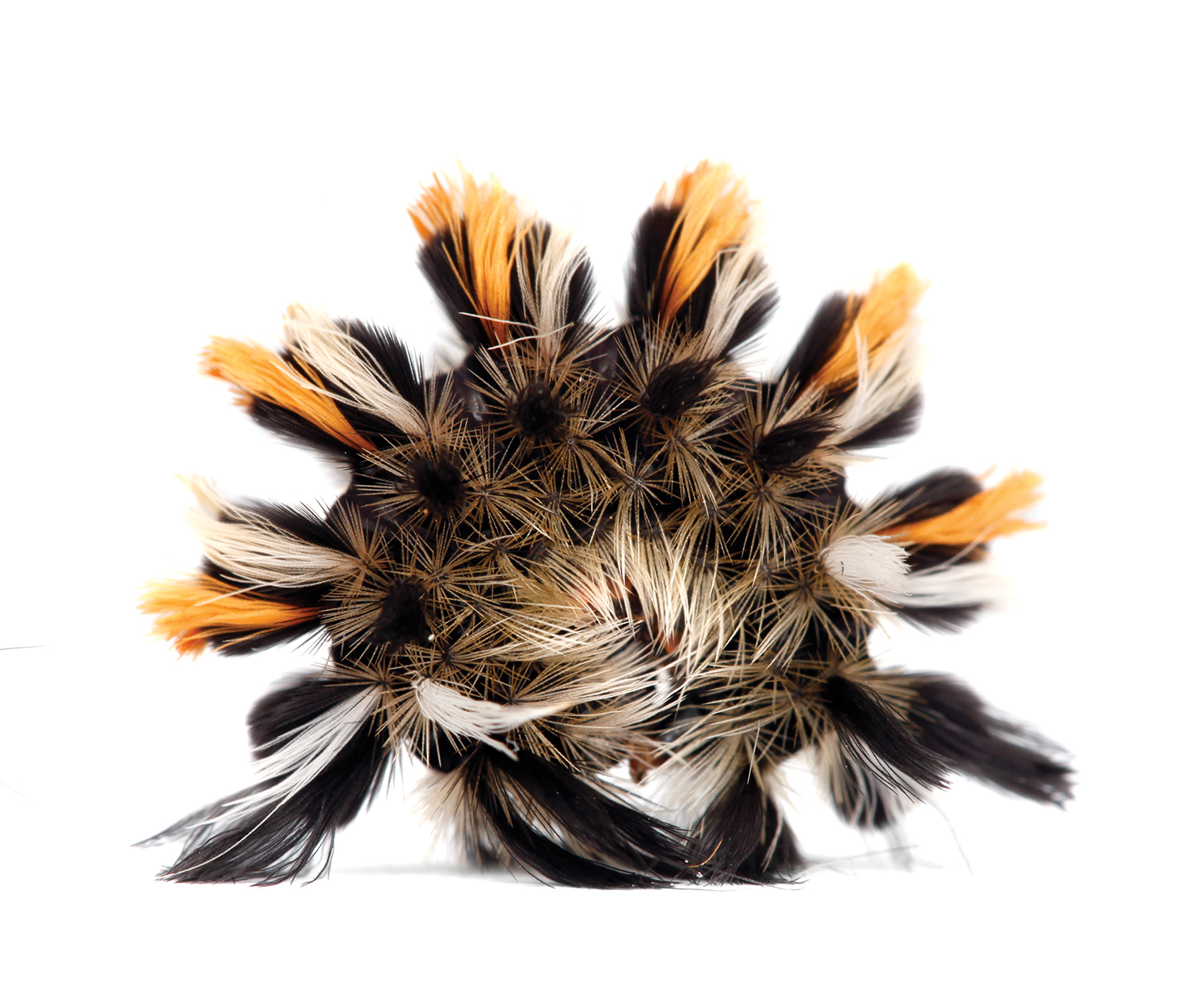 While it may look like a fluffy ball of yarn, the orange-splotched Euchaetes egle signals danger to birds that might otherwise try to chow down—and for good reason. The caterpillar, like the beloved monarch butterfly, absorbs the poisonous cardiac glycosides in the milkweed leaves it eats.