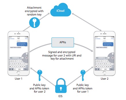 Depending on iOS version, the method used to send iMessages can only send messages up to 4 KB or 16 KB in size. To be fair, that’s not very large file size limit when sending images or audio or videos. Apple encrypts these with a secure 256-bit key, and sends the communication through iCloud. However, iMessages are queued for delivery in Apply servers, and are stored for up to 30 days on these servers, which means the FBI could have (albeit potentially encrypted) messages from up to the day of the shooting on December 2, 2015.
