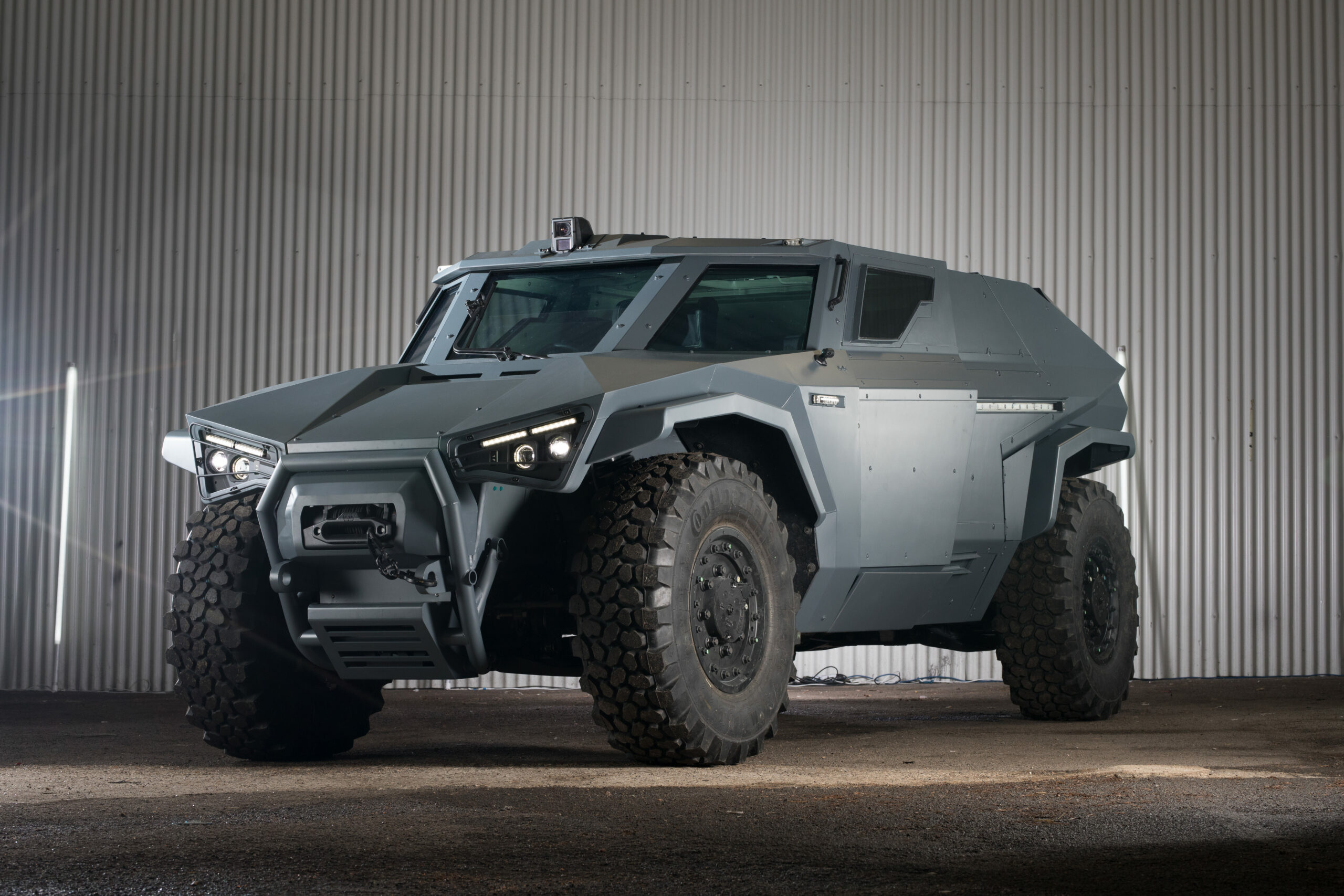 The 6-foot high, 15-foot wide, four-person vehicle weighs 6.6 tons empty. It can drive at over 75 mph and can accelerate quickly, providing almost 60hp per ton compared to around 20hp per ton for a Humvee. For that acceleration, it needs both its 300hp diesel engine and its electric 103hp motor to be engaged at the same time; the acceleration provided would be sufficient to allow it to dodge an incoming anti-tank missile, for example.