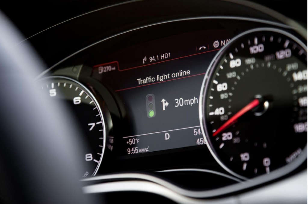 The Audi Online traffic light recognition system could save fuel as well as annoyance, by allowing drivers to anticipate changing lights. The system works by reading the automated signals from a city’s central traffic computer, and transmitting that information to the driver through the car’s Driver Information Display.