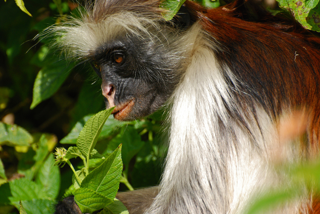 Colobus monkeys are almost exclusively leaf-eaters, filling an important niche in the tops of the African forest. Most dense forests have lots of leaves and fruits that are poisonous or indigestible to most animals; think of the eucalyptus of Australia or the bamboo forests of China. The colobus monkeys eat this abundant food, and are able to digest it thanks to gut bacteria that ferments and breaks down the plant product. This is unusual for a primate; gut bacteria of this sort is more often associated with ruminants like cows. But there are no cows in the upper rainforest! And colobi are important seed dispersal vectors in their habitat.