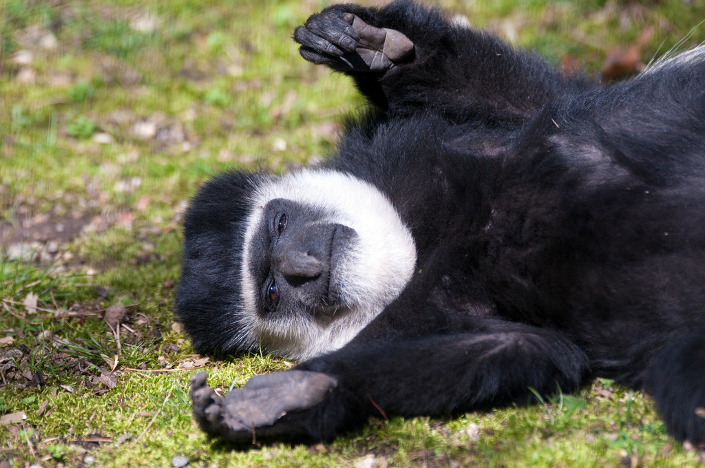 Colobus monkeys have very small stumps instead of thumbs, unique among primates. The name comes from the Greek word kolobós, meaning, variously, “mangled” or “docked” and referring to the lack of thumb. The evolutionary theory is that the thumb was irrelevant to the semi-brachiation mode of transport (swinging through trees) that the colobus uses; if you look at the king of brachiation, the gibbon, you can see that its thumb is very far from its fingers and its mostly irrelevant for moving around. The colobus uses its fingers like a hook to grab onto and swing from branches.