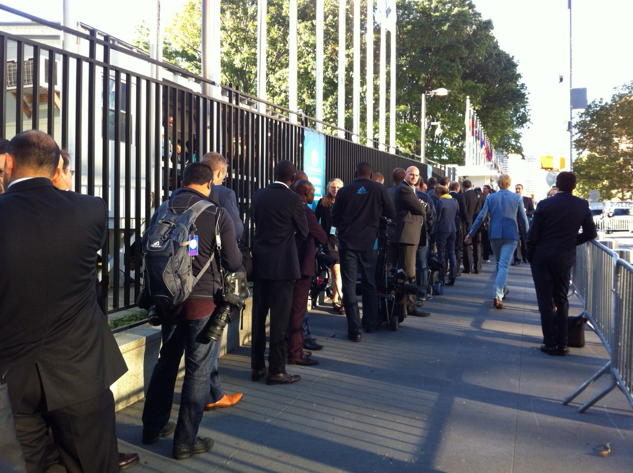 11:52 a.m.: “What strikes me today is the mobilization of all actors” to take action on climate change, says president Francios Hollande of France – from governments to civil society organizations to the private sector. Thank you, high school and college French classes: I’m listening in to his press conference on the public channel, which has no simultaneous translation, while sitting on the floor near a security point in the Secretariat Building. His diction is excellent.
