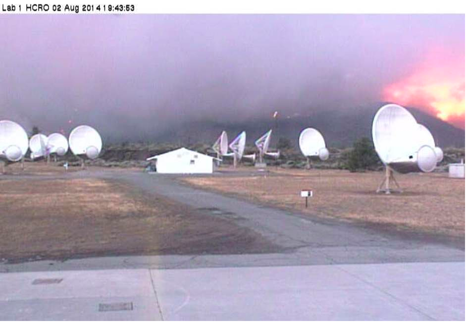 Located at the Hat Creek Radio Observatory in Hat Creek, California, the Allen Telescope Array is caught in the middle of two wildfires. The Eiler and the Bald fires, sparked last week, together have torched more than 100 square miles of Northern California. They are just two of more than a dozen fires that began in the state last week when excessive lightning met the drought-dry underbrush.