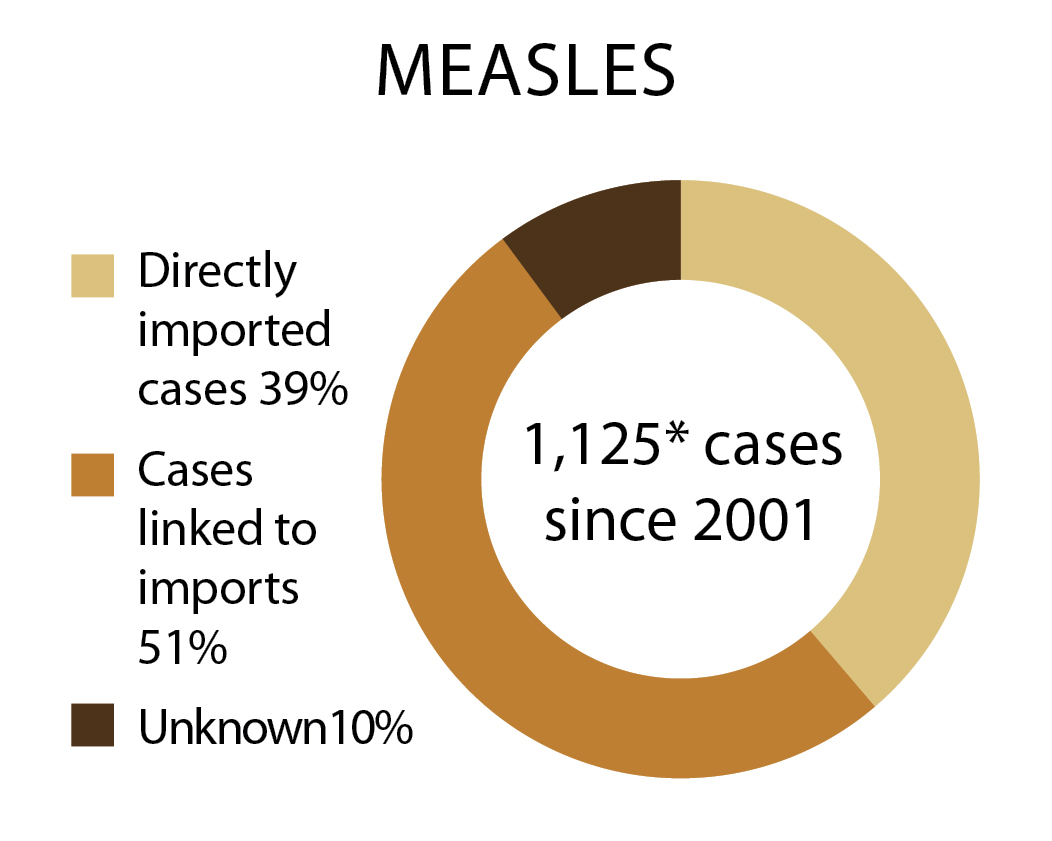 Measles was eliminated in the U.S. in 2000, but cases still pop up when unvaccinated people pick up the highly contagious disease abroad. Outbreaks have been worst where infected travelers return to areas with relatively high numbers of other unvaccinated people.