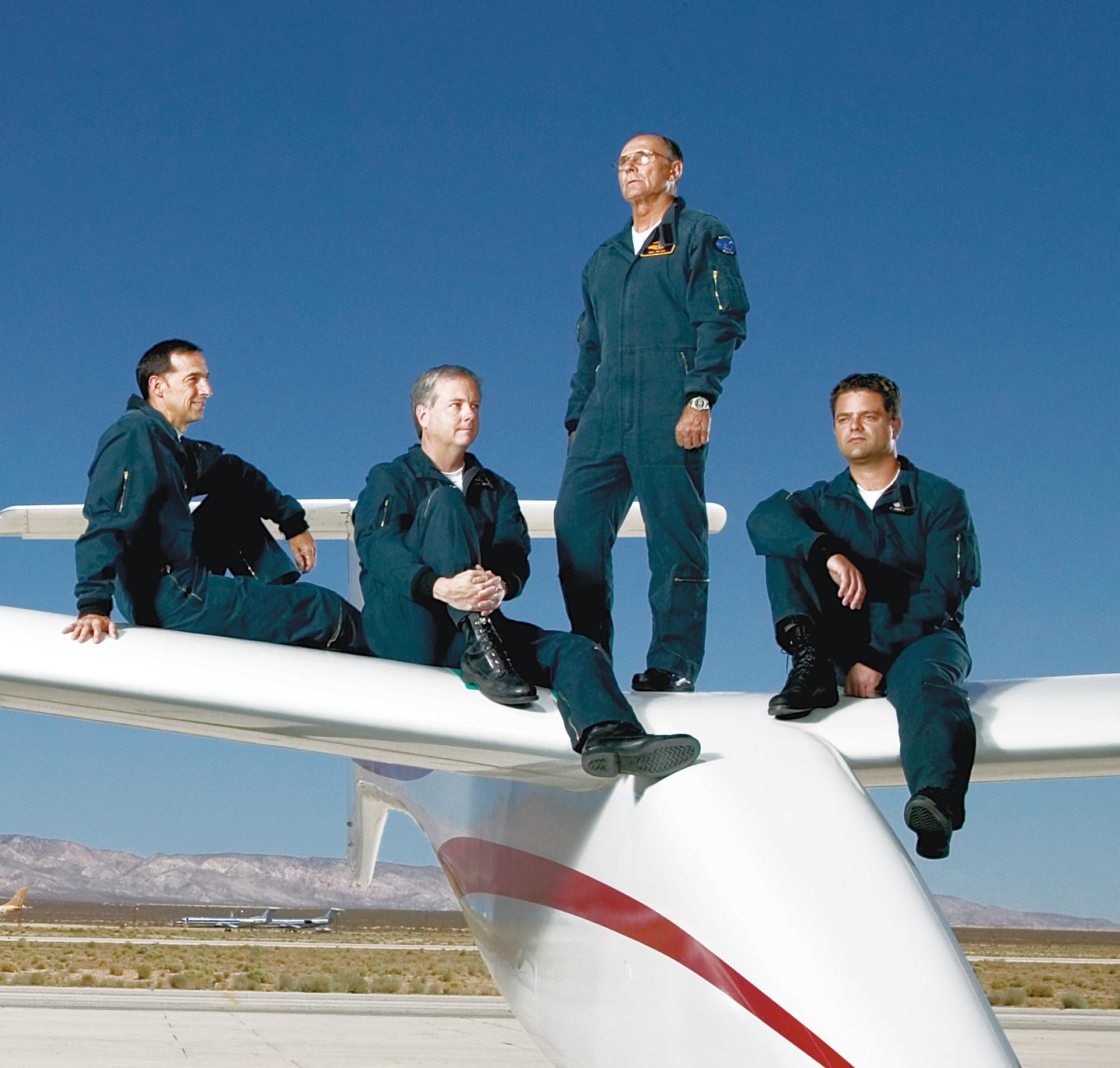 The audacity of Rutan’s design is what draws these pilots in. SpaceShipOne is actually three vehicles in one—a glider, a rocket and a spacecraft. It uses different controls and configurations for each phase of flight, including a dramatic upward “feathering” of the wings to automatically position the vehicle for reentry, like a shuttlecock. The transition from one mode to another, as well as nearly every second of flight within each mode, requires extreme skill in an aircraft as twitchy as this, the kind of hands-on piloting that modern space shuttle commanders and Soyuz cosmonauts rarely experience during their mostly automated launches, orbital maneuvers, reentries and landings. Fortunately, Rutan has spent nearly three decades creating a small but exceptionally talented cadre of test pilots, men who have flown some of the most unusual vehicles ever created, from oddly configured high-performance recreational airplanes and around-the-world record-setters to secret military projects and scientific research aircraft. Several of the pilots have flown experimental airplanes by riding on top of them, as if on a horse. They’ve been in deadly flat-spins, had vital components break off, and been completely out of control—but they’ve never been killed. None have even had to hit the silk, parachuting to safety as one of Rutan’s weird inventions blasts a smoking hole in the desert.