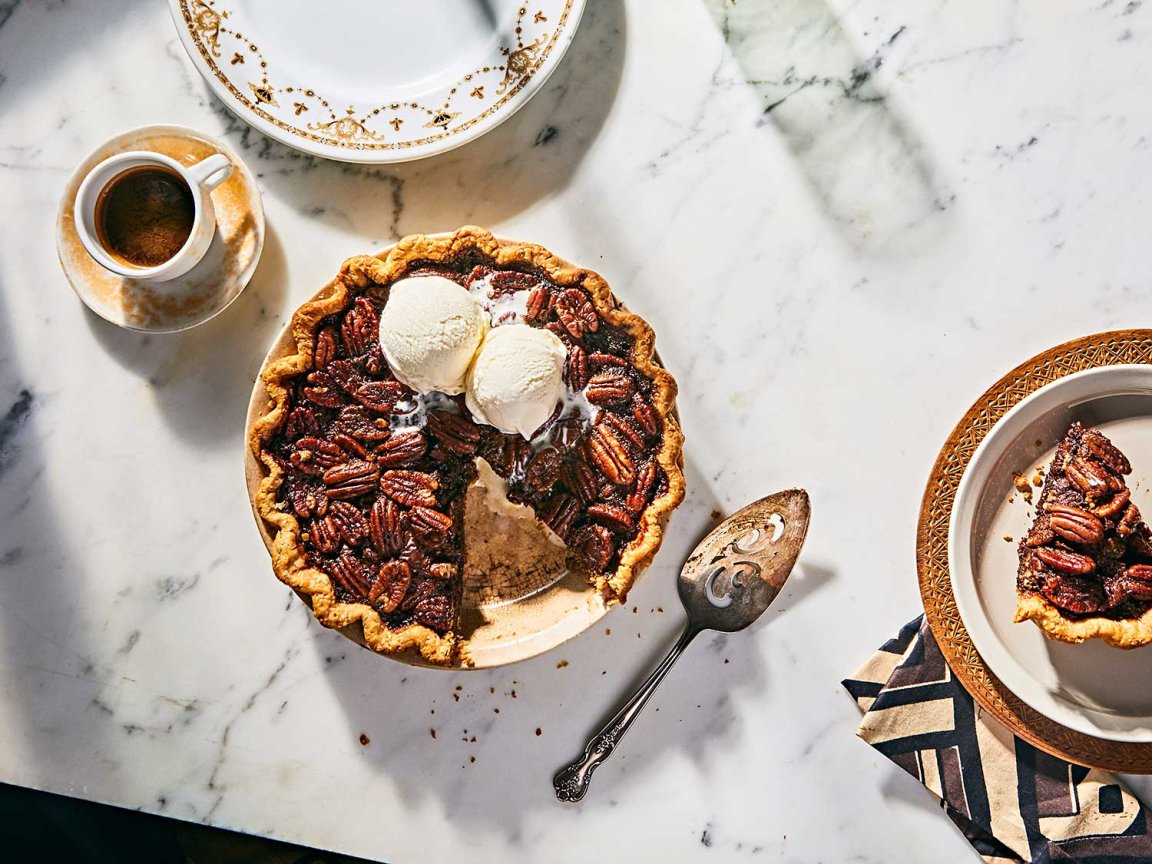 This pecan pie combines chocolate and bourbon in the most decadent way