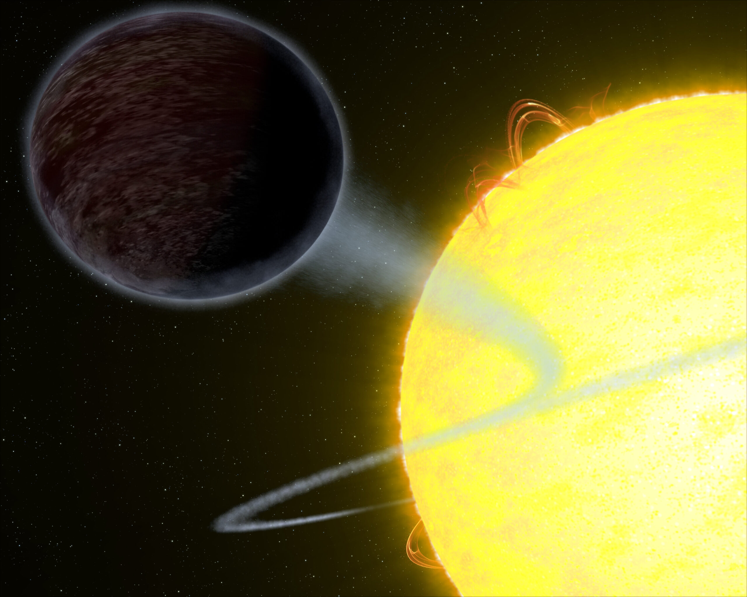 The lack of reflectivity means that the planet converts all its light to heat, maintaining a steady, searing hot temperature. It also makes the planet appears pitch-black to observers. But the star isn’t letting the planet steal its light without a fight. Instead, it’s siphoning off bits of the planet’s atmosphere and pulling the gasses into itself.