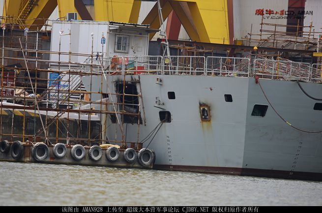 New photos available at the Chinese website lt.cdbjy.net show another wrinkle to China’s buildup of new antisubmarine warfare capabilities. The Type 054A is a 4,000 ton multi-role frigate armed with 40 anti-ship and air defense missiles; it is also the most ubiquitous warship class in the People’s Liberation Army Navy (PLAN). The modified stern of this Type 054A Frigate has been upgraded to support dedicated anti-submarine warfare (ASW) sonars. Two more openings were cut into the left side of the stern, presumably for a towed array (passive) sonar (TAS) and a variable depth sonar (VDS). TAS is a set of listening devices called hydrophones, placed on a cable that is up to several kilometers long. By deploying at a distance from the ship, TAS has less blind spots than hull mounted sonar and reduced interference from the ship’s own noises. The VDS is lowered from a machine powered winch in the door sized vertical opening of the stern: it can be dropped to different ocean depths in order to more efficiently locate submarines in deep waters (warmer water near the ocean surface reduces the range of active sonar).