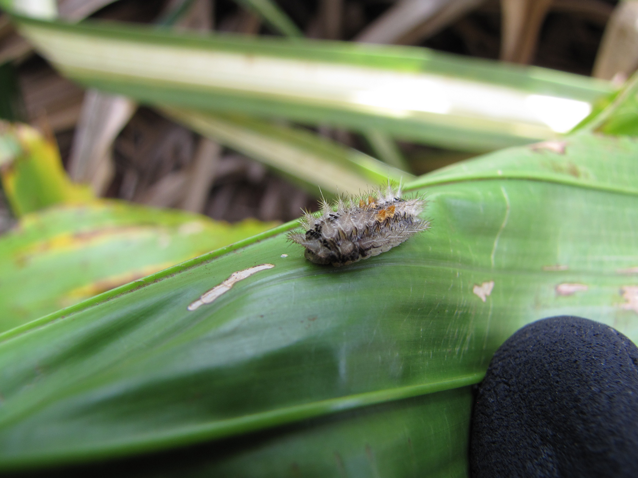 Then there is the prickly pear, which was likely first introduced to Hawaii in the early 1800 and eventually controlled with a Cactoblastis cactorum _moth in the 1950s; the Erythrina gall wasp, an invasive insect that began destroying native wiliwili trees in 2005 and was quickly controlled with a parasitic wasp, the larvae of which eat Erythrina larvae; and the stinging nettle caterpillar, pictured above, which came to the islands in 2001 and was eventually curbed with another parasitic wasp called _Aroplectrus dimerus (here it is in action).