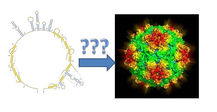 The first step was to identify any actual packaging signals in the genome. This was a straightforward process in which potential RNA binding sequences within the coat protein were identified and then tested for their ability to bind to artificially made sequences. Not surprisingly, several sequences were found, supported by different secondary stem-loop structures of viral RNA.