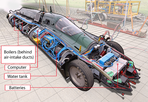 Ten years of toil for a ride lasting less than two minutes — that’s the trade a team of Britain’s finest engineers, mechanics and speed junkies have made for a chance to break the century-old speed record for a steam-powered vehicle. Using propane to turn 10 gallons of water a minute into superheated steam, they expect their 25-foot-long Steam Car to top out at 170, shattering the record by more than 40 mph.