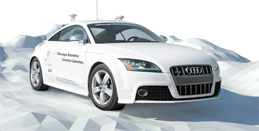 Audi and its Volkswagen parent, in collaboration with Stanford University and Volkswagen’s Electronics Research Laboratory (ERL) in Silicon Valley, have already birthed some of the world’s most gifted robo-cars. In 2005 a VW Touareg dubbed Stanley became the first fully automated vehicle to negotiate a 132-mile Mojave Desert course and win the Defense Advanced Research Projects Agency’s Grand Challenge. Last year in Manhattan, we twiddled our driving thumbs inside Junior, a robotic VW Passat designed for the urban environment, sensitive to traffic signals and stray pedestrians. The latest offspring of the collaboration is Shelley, a production-based TTS sports car named after rally racer Michèle Mouton, the first woman to win the prestigious Pikes Peak International Hill Climb.