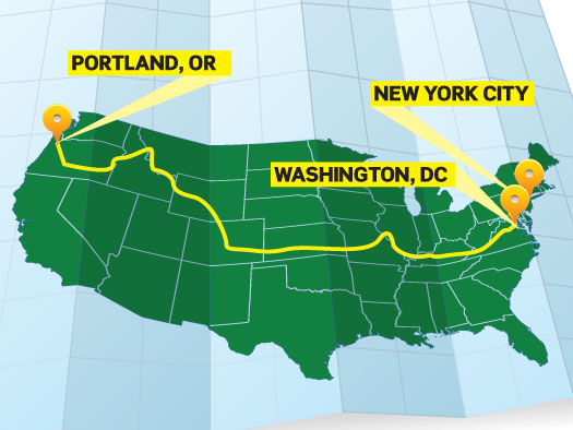 In the interest of increasing our visibility on the road, we had already added a roll bar-like structure, with red flashing strobe-lights attached, to the rear of the vehicle. But rather than rely on the legendary vigilance and courtesy of the American driving public, we knew the best strategy would be to avoid confrontation whenever possible. In addition, we had no desire to spend the entire summer on the shoulders of major highways or inching through city traffic.