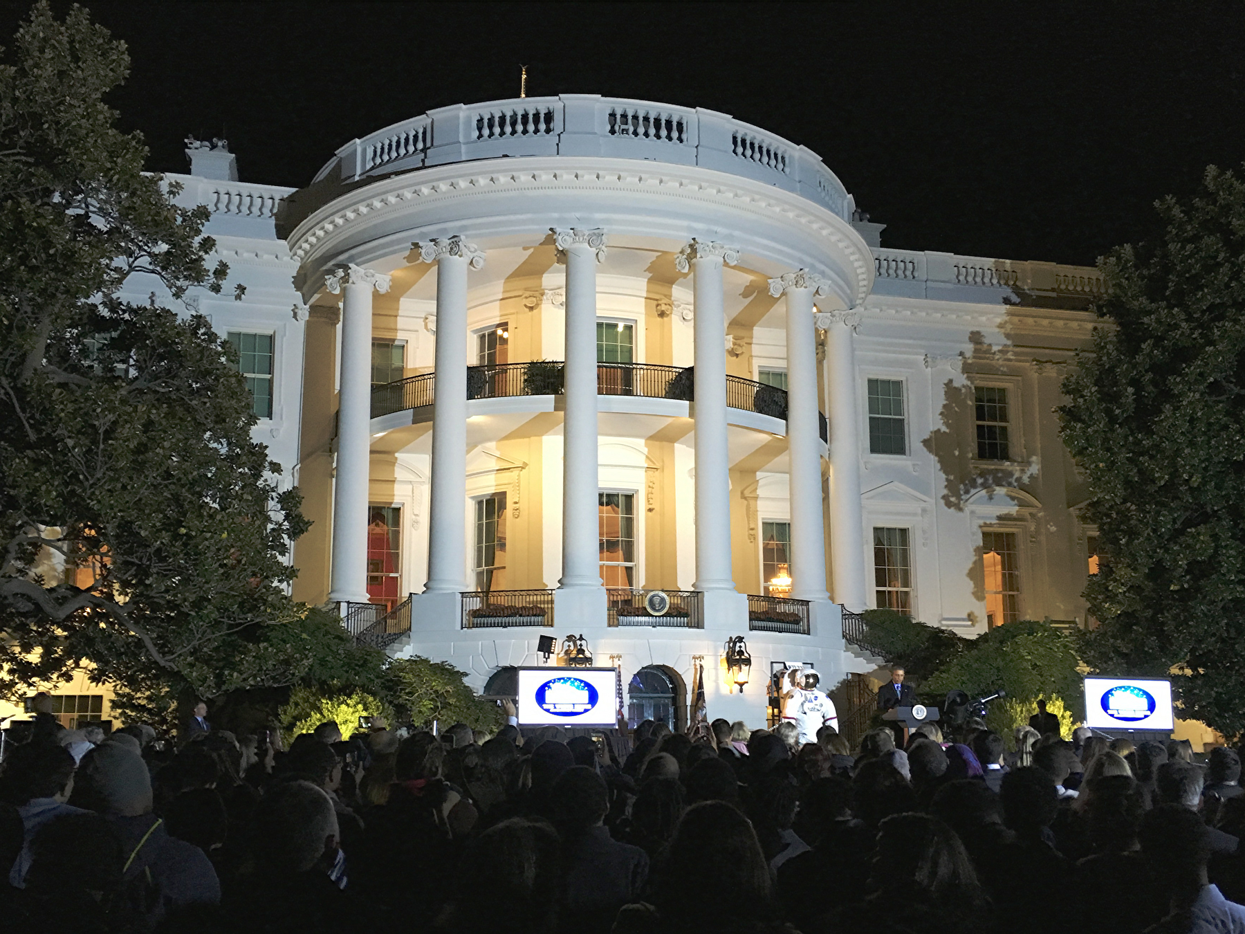 After the President’s remarks, attendees spent the evening looking through four telescopes set up around the South Lawn, visiting a portable planetarium, and stopping by a dozen space-themed exhibits on display tables set up by companies such as Boeing. A question-and-answer session with the Mythbusters ended the starry night.