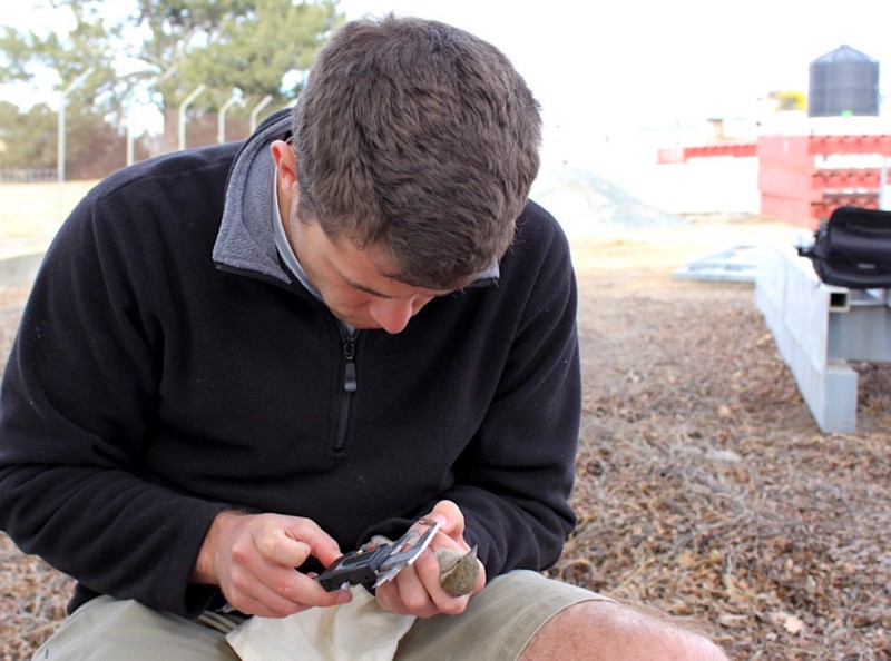 Samuel Andrew measures a sparrow. Monica Awasthy