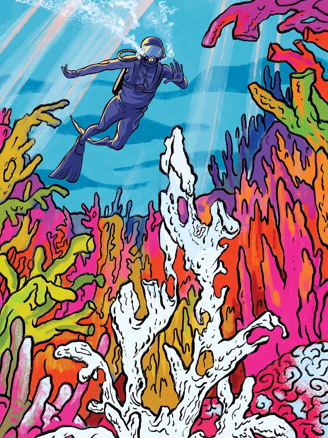 Back at the surface, Karen Neely, a Nova Southeastern University marine biologist with the easy manner (and tan) of someone who spends her professional life on the water, scans survey sheets marked with terse scribbles of observation. Coral reefs are bleaching around the globe, but Neely and her collaborators are grappling with a new, more mysterious epidemic. And to fight it, they’re using a weapon scientists never thought they’d unleash.