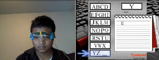 It works by tracking a user’s eye movements across a keyboard, translating voltages through the software and pasting letters onto a virtual notepad. A user simply looks at the letters he or she wants and writes a sentence. Watch him demonstrate it in the video below.