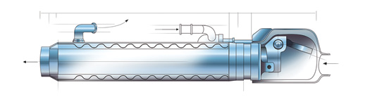 Oil flows through a bypass pipe into a heat exchanger, rather than flowing back into an oil pan to cool. Once the oil is heated to as high as 300˚, a flap valve in the heat exchanger redirects exhaust gas into an exhaust bypass so that no further heat transfers to the oil.