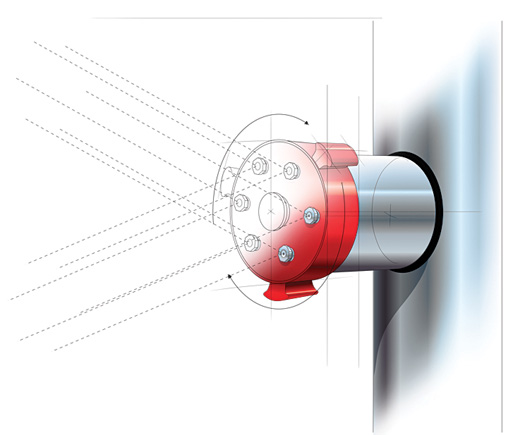 After the incident, Robinson resolved to find a better way to cool down on the job. Misting fans help, but besides their high cost, they require an external power source, take up space on the truck, and need a lot of setup time. Robinson thought of a simple solution. Why not turn the discharge caps that cover the hose ports that are standard on all fire trucks into water misters? A typical truck has six to eight ports that connect to an onboard water tank, one or two of which usually sit idle during a fire.