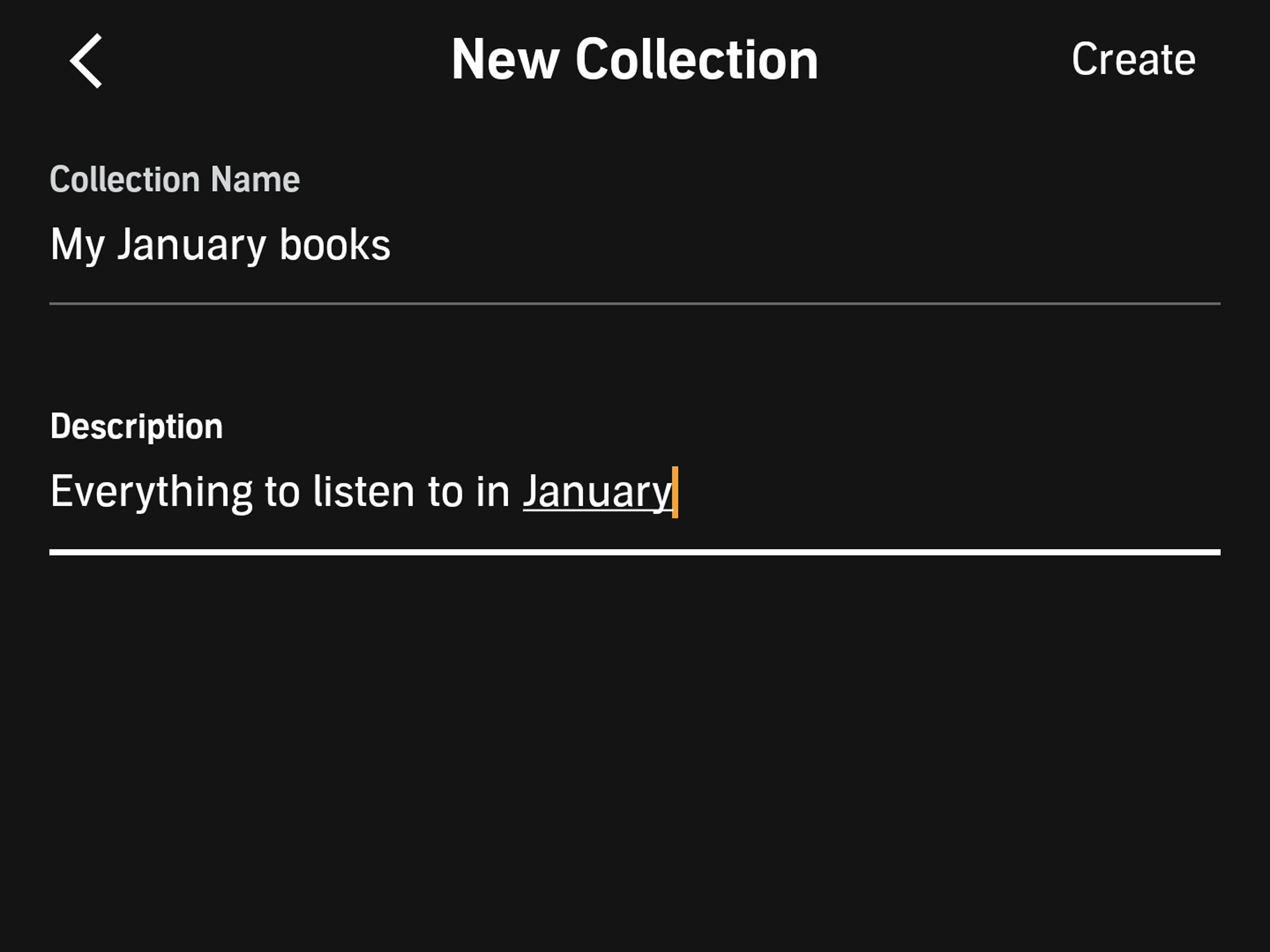From the Library tab in the Audible app, tap Collections up at the top. These can be whatever you want them to be: e-books for travel, e-books sorted by genre, e-books you want to come back to, whatever you like.