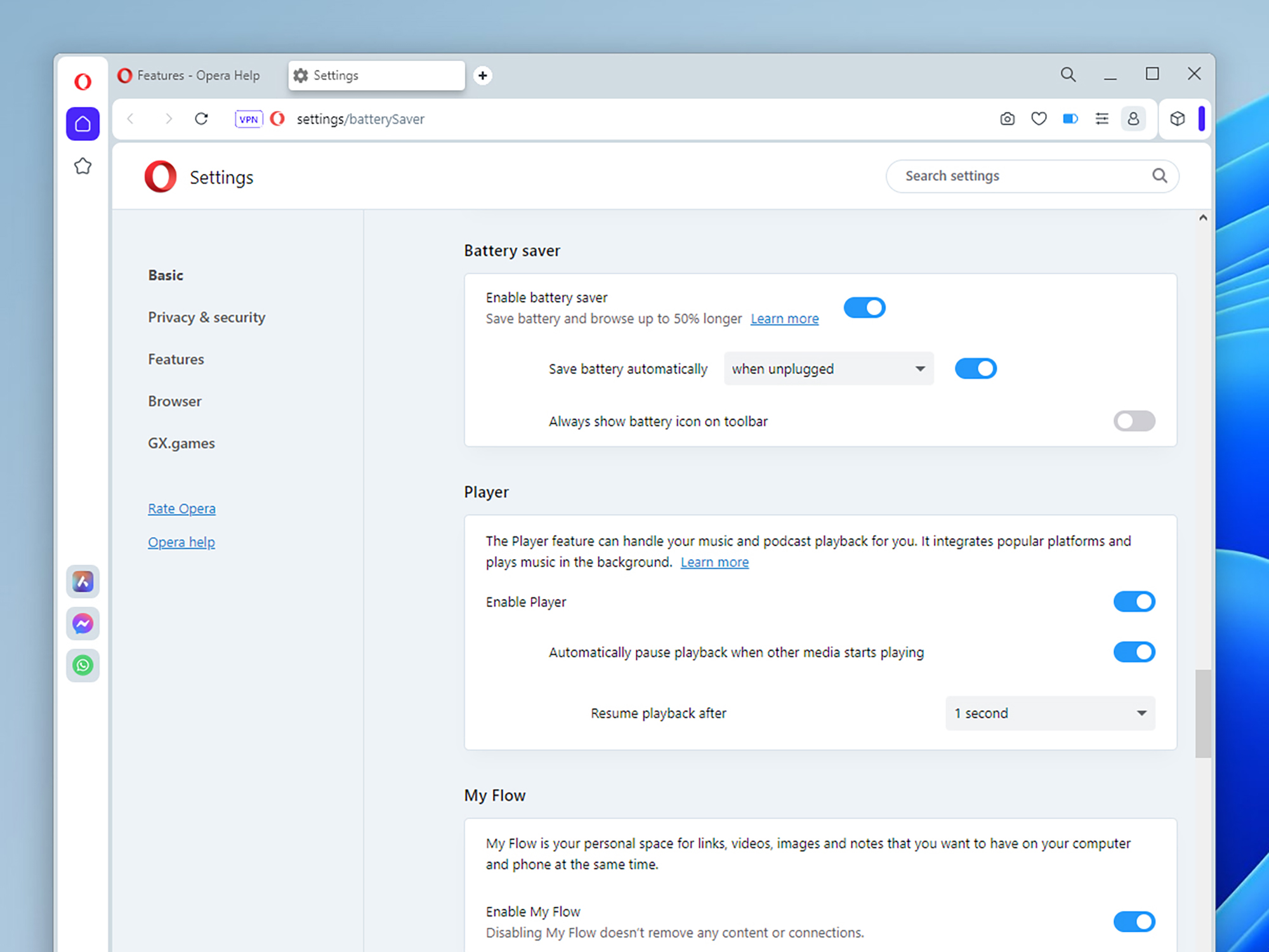 Opera is another browser that comes with a built-in battery saving mode, and it’s called, appropriately enough, Battery Saver. Like those in other browsers, it works by turning off background activity that’s not essential to the browser tab you’re currently in, and it disables certain plug-ins and animations as well.