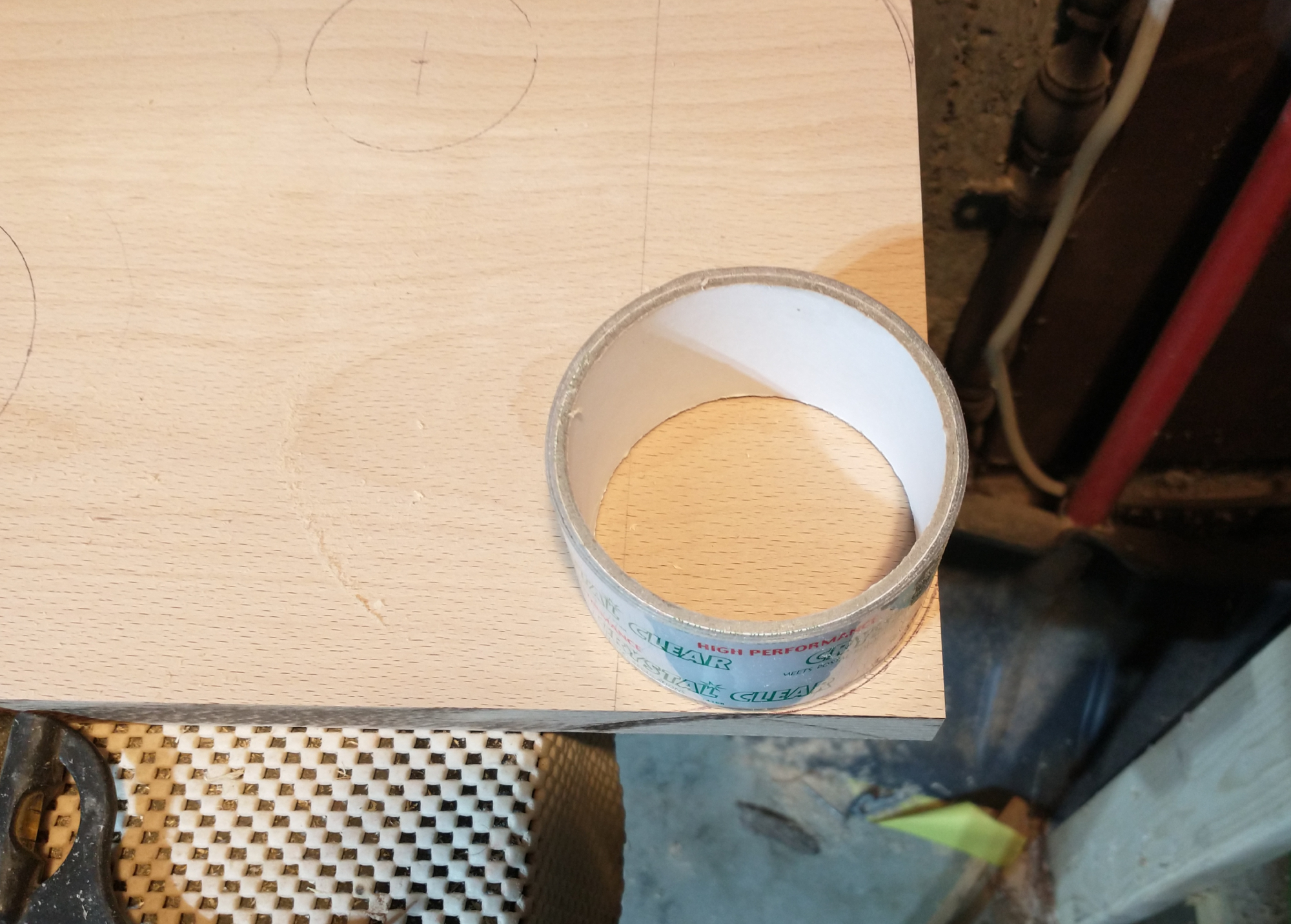 If you want your template to include the non-circular elements, like the handle or phone holder, cut them out with a jigsaw. I made my handle 4 inches long and 1 inch wide, but I didn’t measure the phone holder—I just traced my phone.