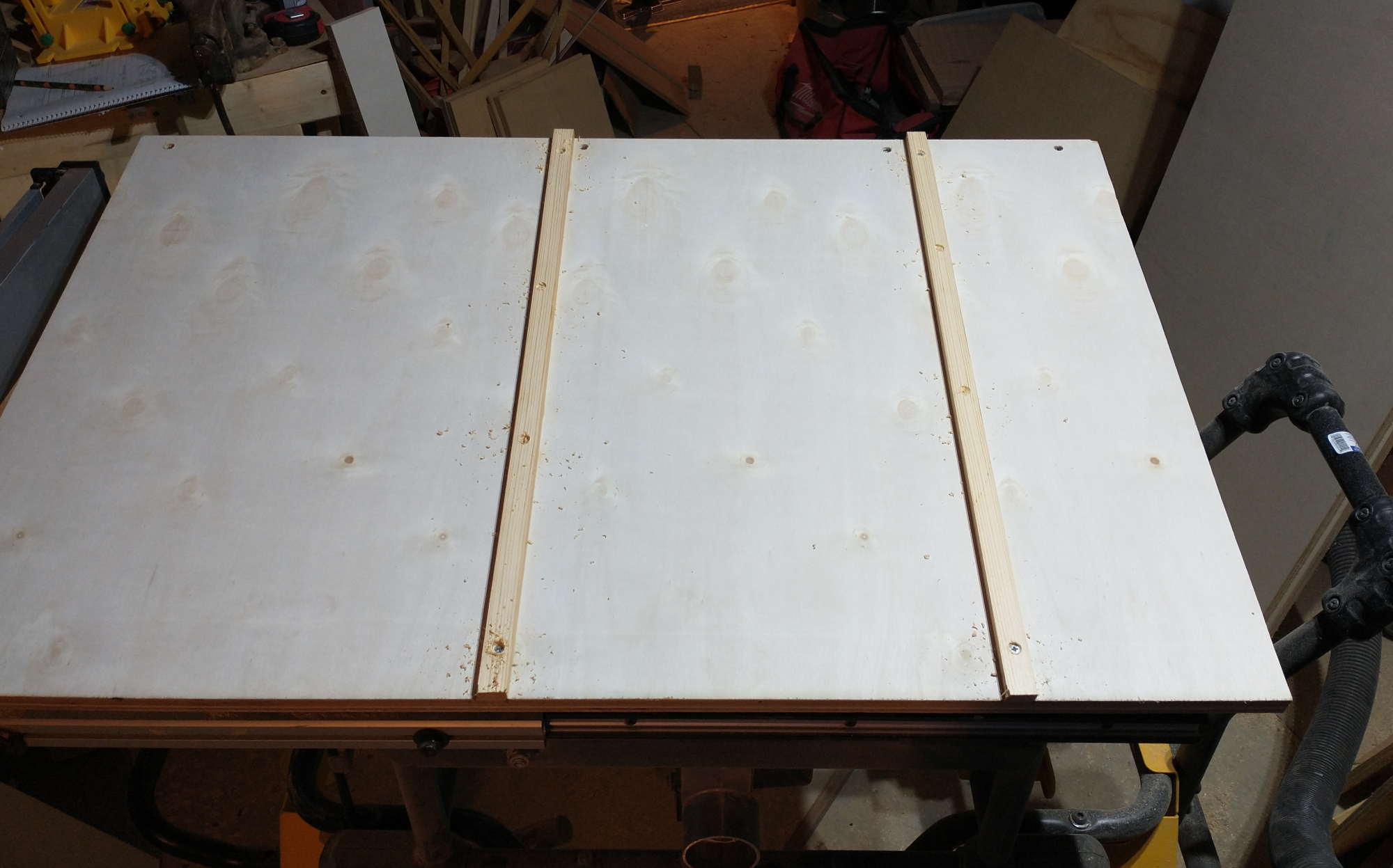 2. Cut the plywood to length. One sheet will be the base of your sled, while the other will be cut into pieces and used to build the fence and stabilizer board. Because these are structural components, both sheets need to span the width of your crosscut sled. Cut them to that size (in my case, it was 36 inches).