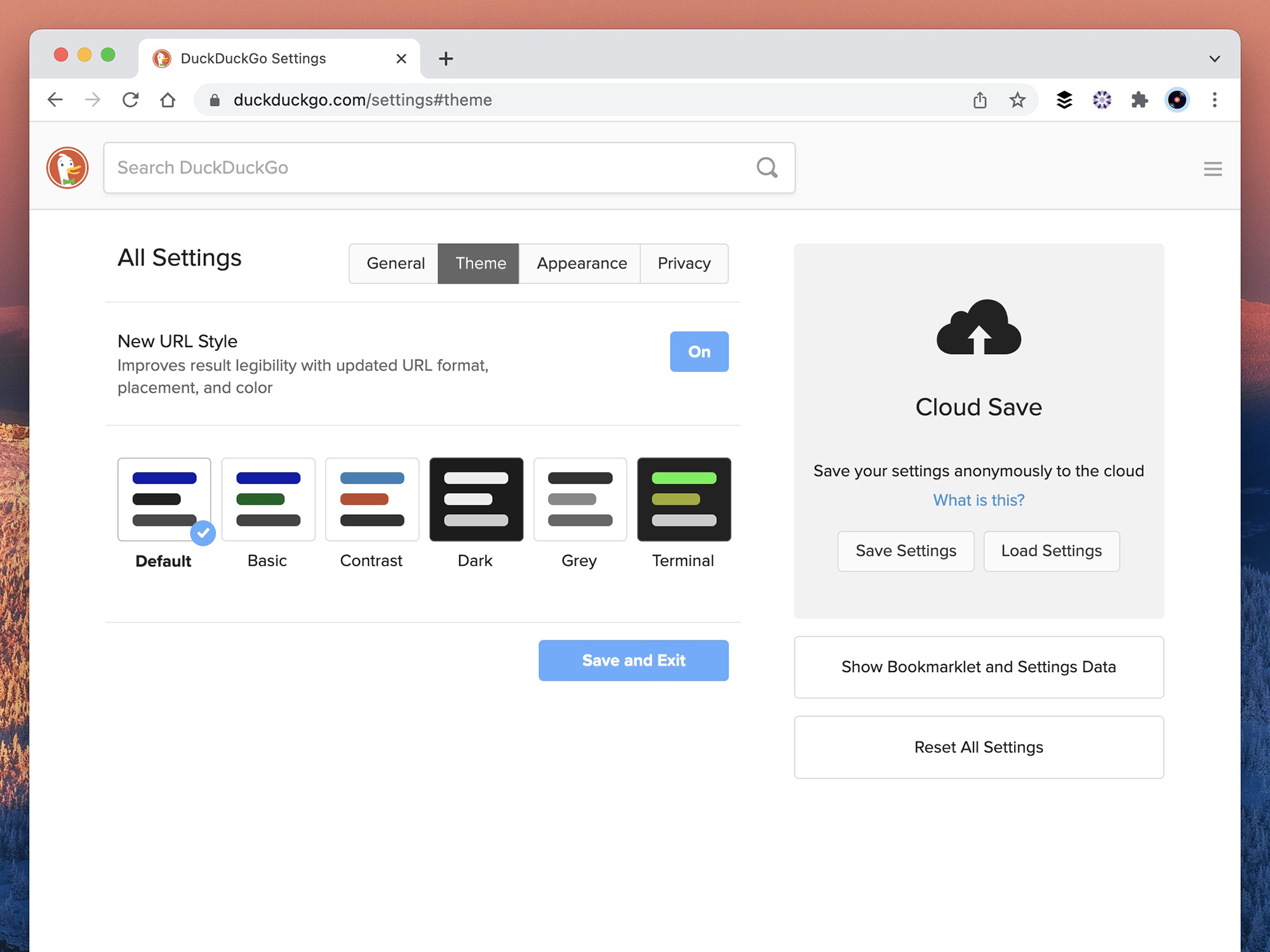 Select Appearance to take even more control over how DuckDuckGo looks. Here you’ll find options for adjusting the font style and size, and for selecting the specific colors used on the results page. Click Save and Exit to log your choices in your browser.