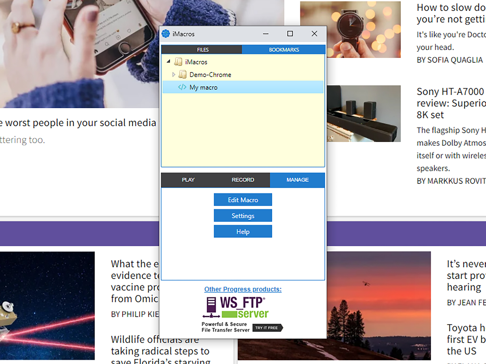 Many of us do much of our computing inside a web browser these days, so it can be useful to enable macros here too. While there isn’t yet a browser with macro support built in, you can add the ability to record tasks to Chrome, Firefox, and Microsoft Edge by installing the comprehensive iMacros extension. It’s free with a limit of 50 steps per macro, and you can remove this limit and get more features with a one-off $99 upgrade payment.