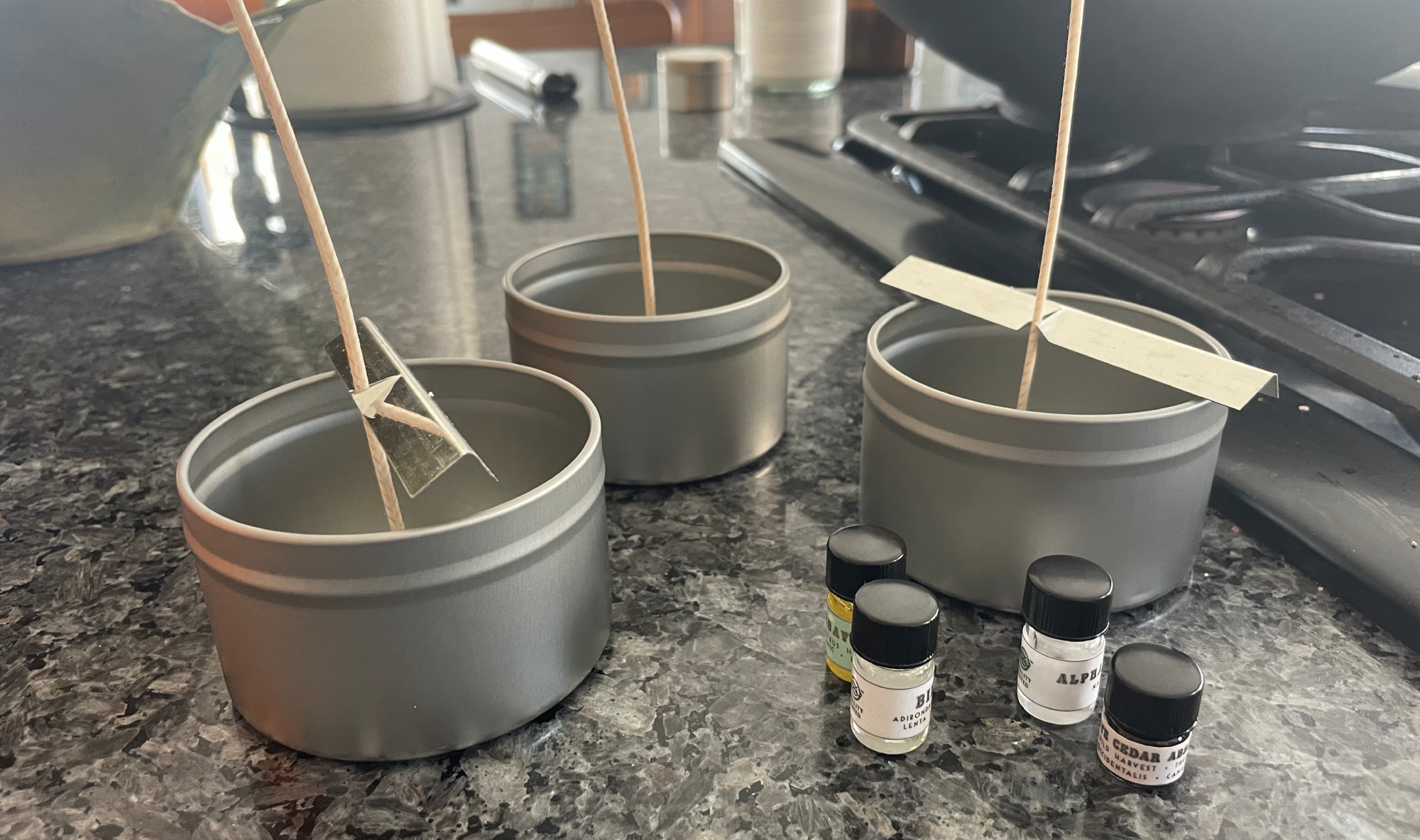 3. Prep your candle vessels. You can reuse old candle jars (just clean them with boiling water first) or use fresh tins from a candle making kit.