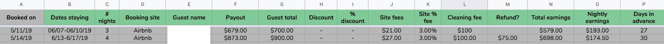 Although individual property listing websites will tell you the revenue you’ve earned from their platform, you may want to track all your earnings if you’re listing on multiple sites. Paid booking management services like Guesty can help, but if you plan to do it yourself, these are some of the key metrics we tracked for our properties: