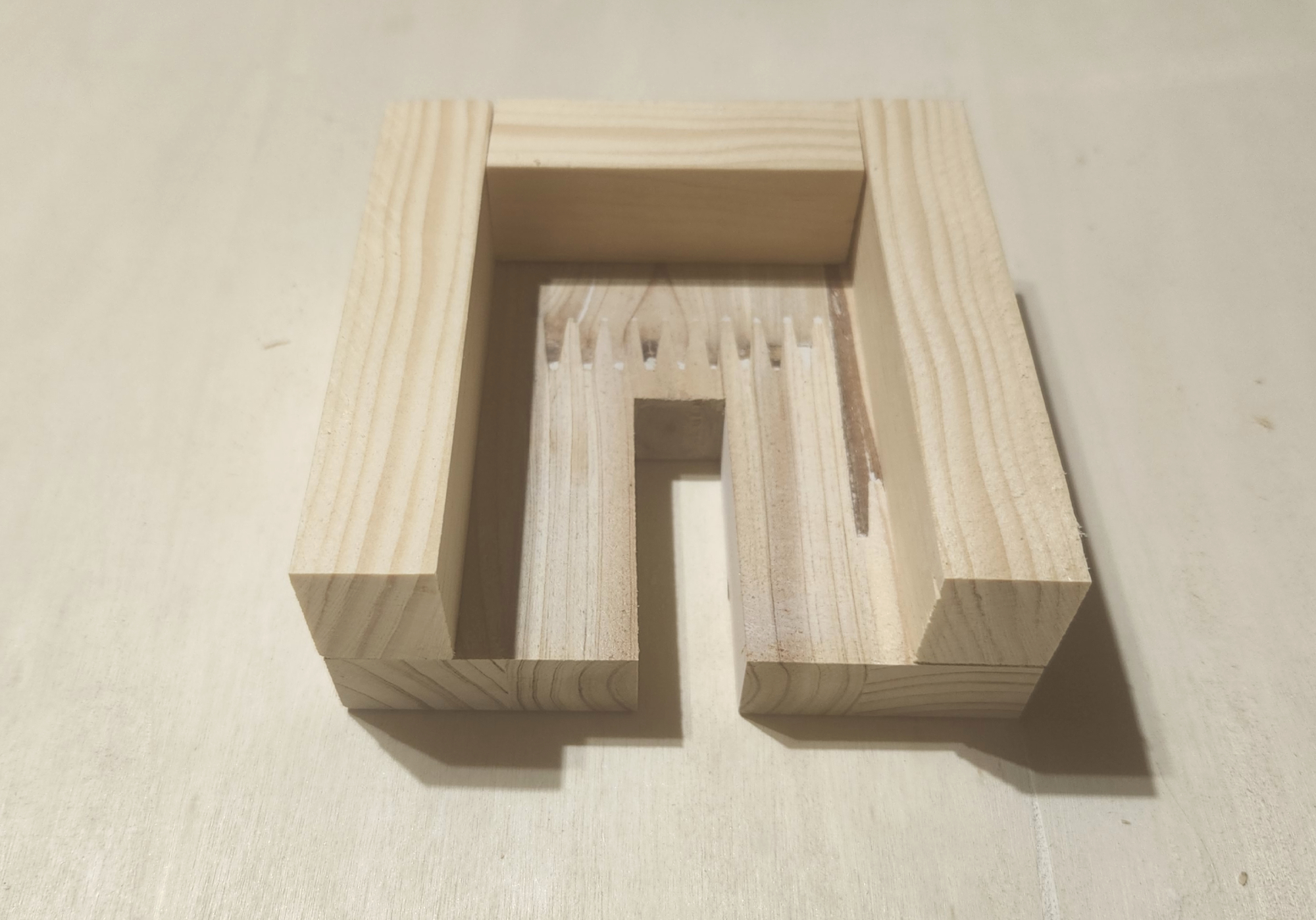 Since I wanted to be able to charge my phone from this stand, I also added a phone holder. To do so, I modified the dimensions of the base board to be long enough that a phone could stand up in front of either the headphones or the box. If you want a phone holder but not a charging port, the phone will stand up in front of the headphones.