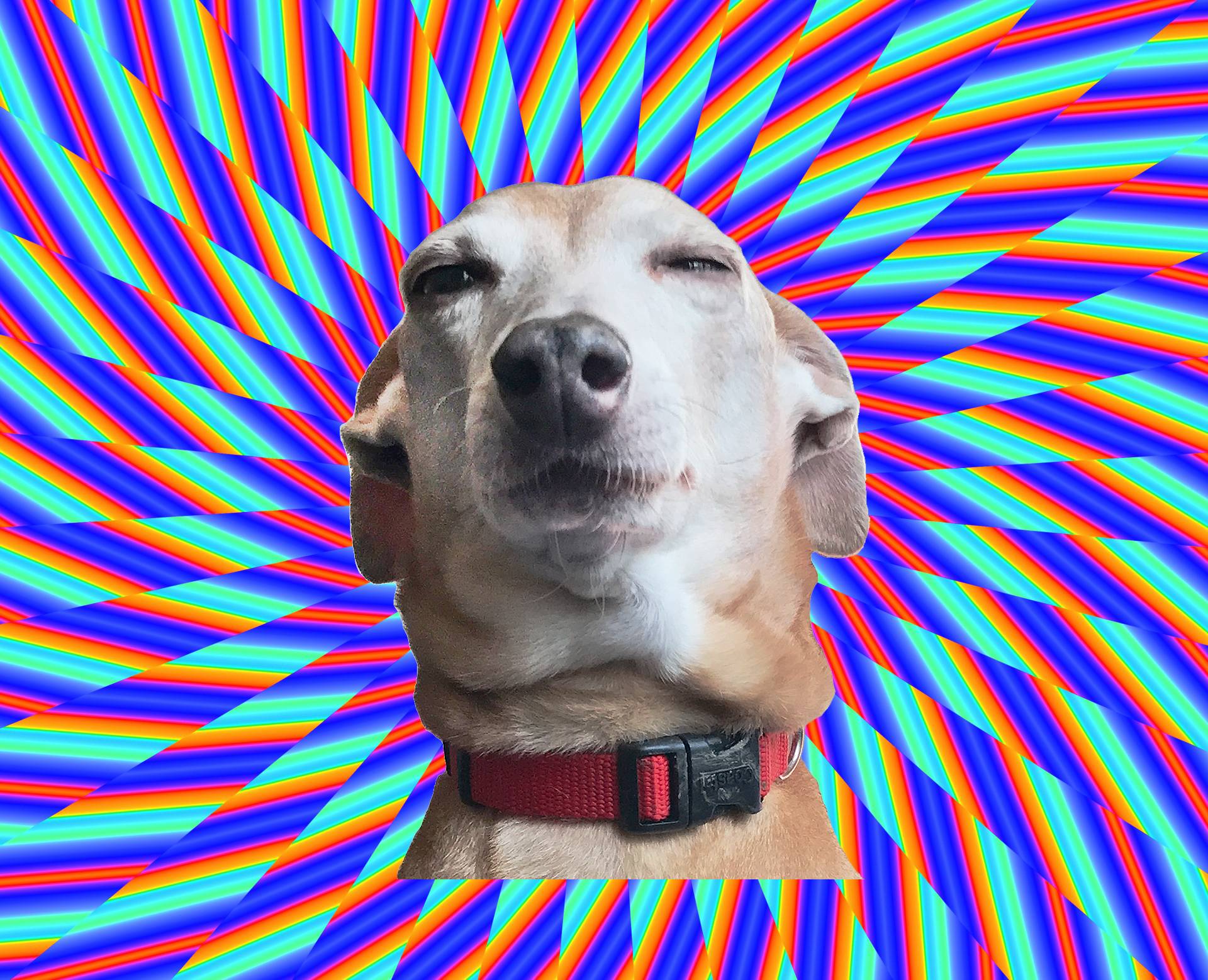 For those who’ve witnessed a dog trance, it certainly seems like your four-legged friend has left this earthly plane for somewhere more psychedelic. Once the object of the trancer’s desire is spotted—typically something hanging, like plant leaves or curtains—the dog creeps beneath it, ears completely flat, nose pointed up, eyes squeezed shut in what looks like utter ecstasy.