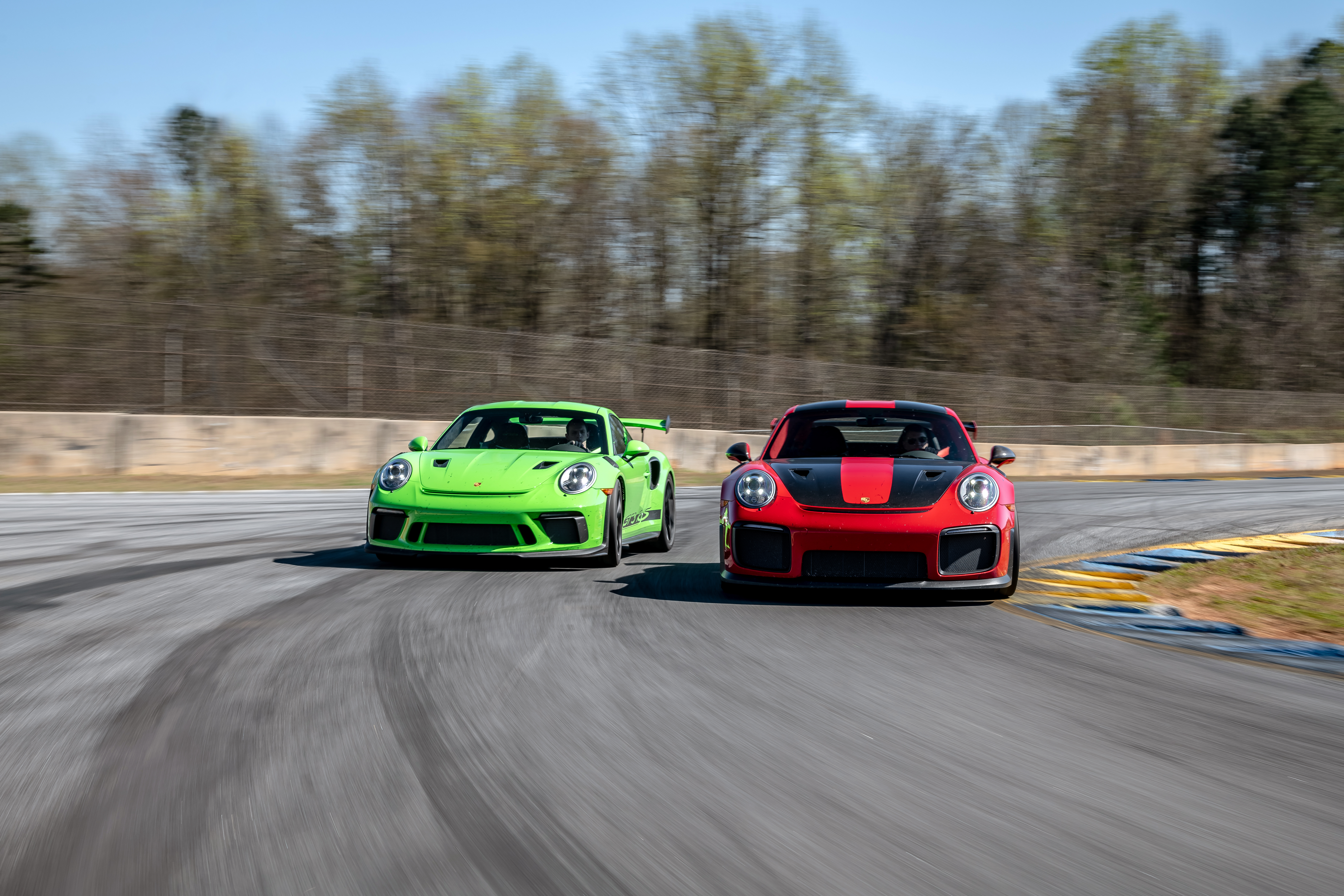 The nearly indistinguishable designations of these cars—one has a “2” in the name, the other, a “3”—and their doppelganger appearance will lead fans to wonder what exactly the difference is between them. Our efforts to answer that question while driving them on the track identified one of the cars (the GT2) as almost incomprehensibly fast on the straights, while the other rips around corners with confidence.