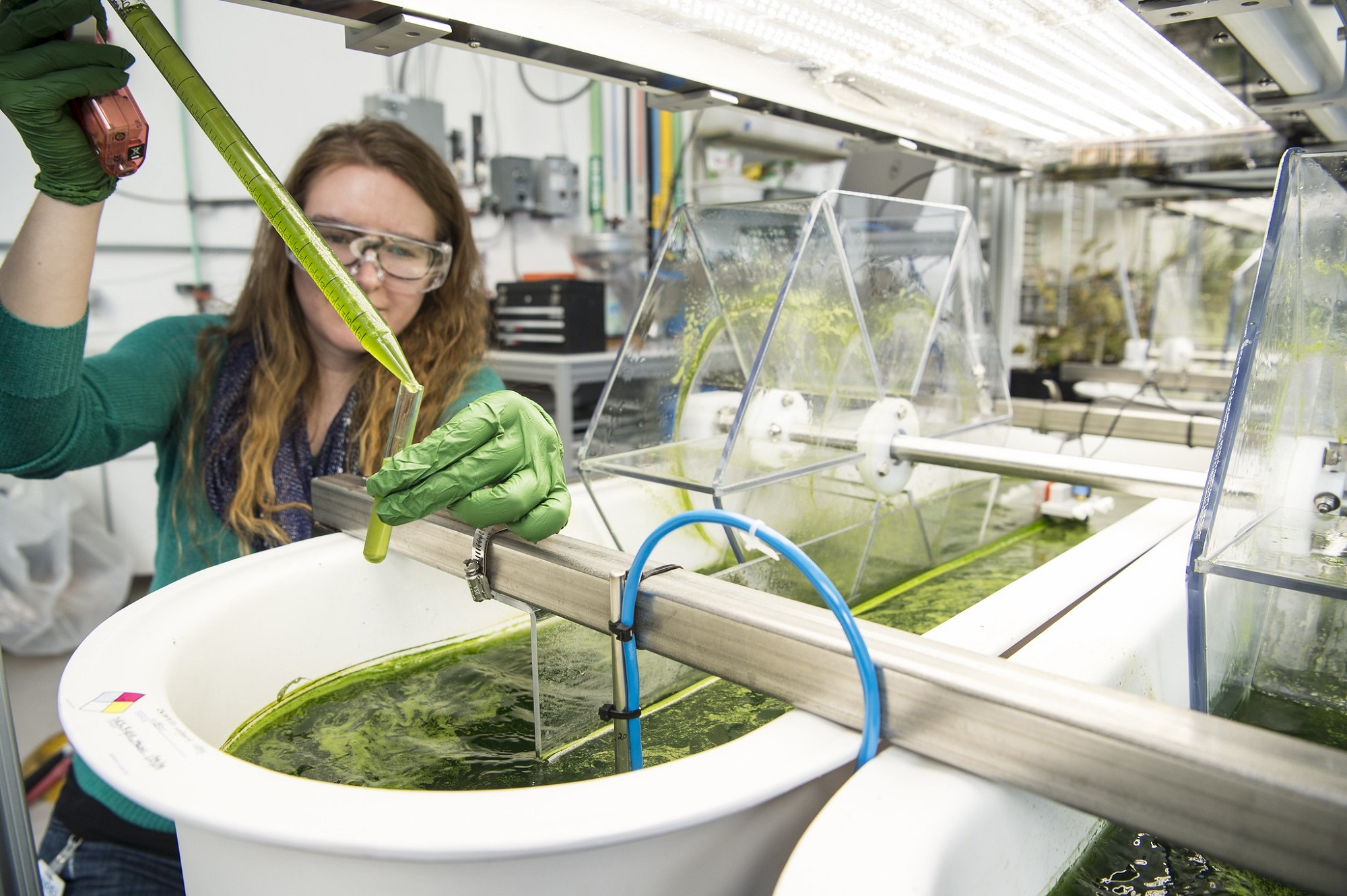 “We’re going after the minutiae here. We’re going after tiny little cells, and we’re going after the tiny little oil droplets that exist inside those cells,” she says. “And so we have a lot of variability in the production of oils in algae, ranging anywhere from 15 percent to 50 percent oil [per organism].”