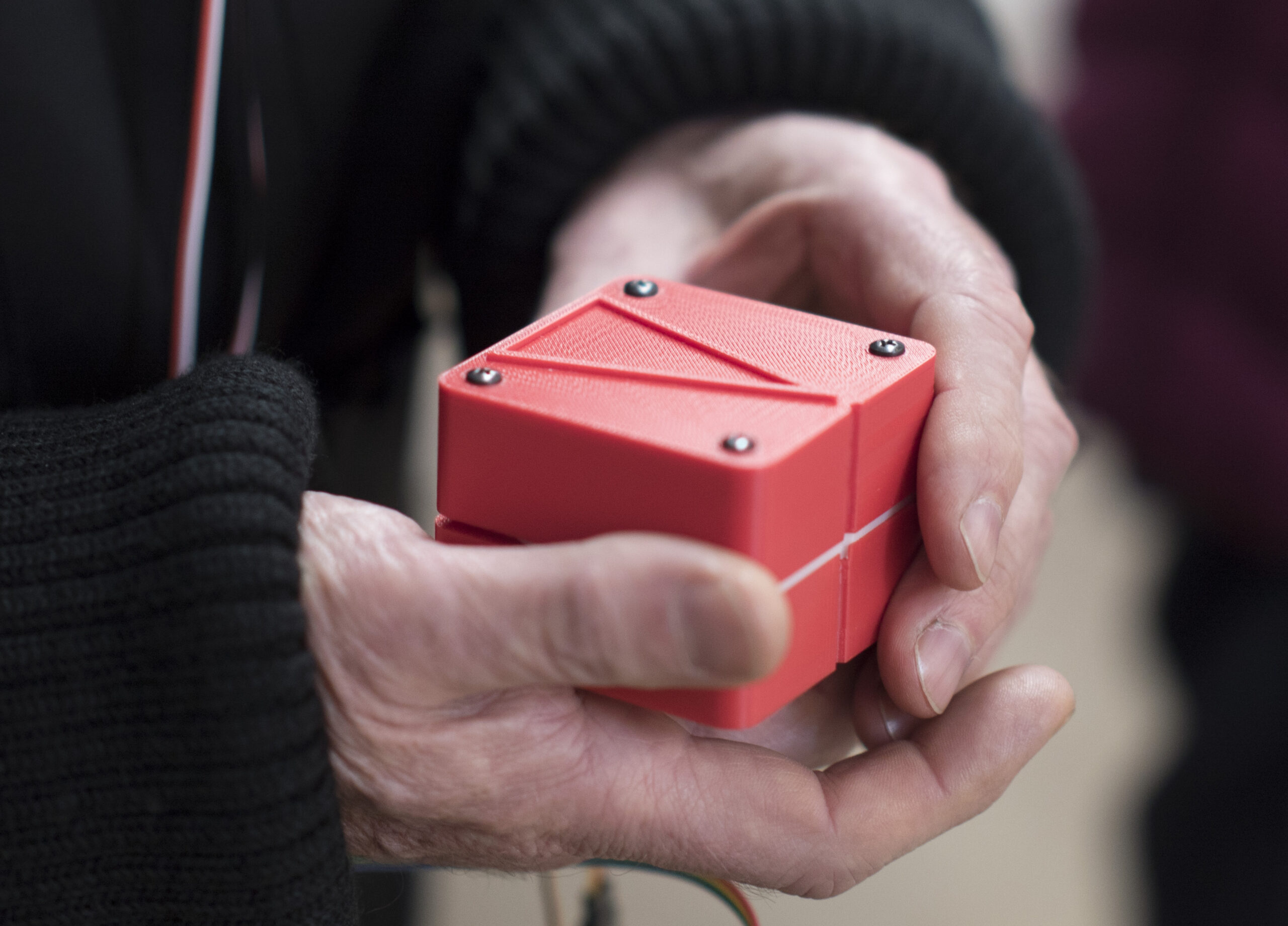 The project was funded by NESTA, an independent charity organization in the United Kingdom. To test out his product, Spiers partnered with the British theater company Extant, and adapted a version of Flatland–a satirical novel about a fictional two-dimensional world–around the Animotus device. Audience members, both sighted and visually impaired participants, became the actors and were guided around a pitch-dark stage (which happened to be the inside of an old church). They followed the Animotus device’s instructions to reach various destinations. In addition, participants listened to other actors read the narrative and heard sound effects that told the rest of the story. By the end of the play, participants became so comfortable with their Animotus devices that they didn’t want to give them up, said Spiers. “It was quite endearing for me to see them become so attached to to the device.”