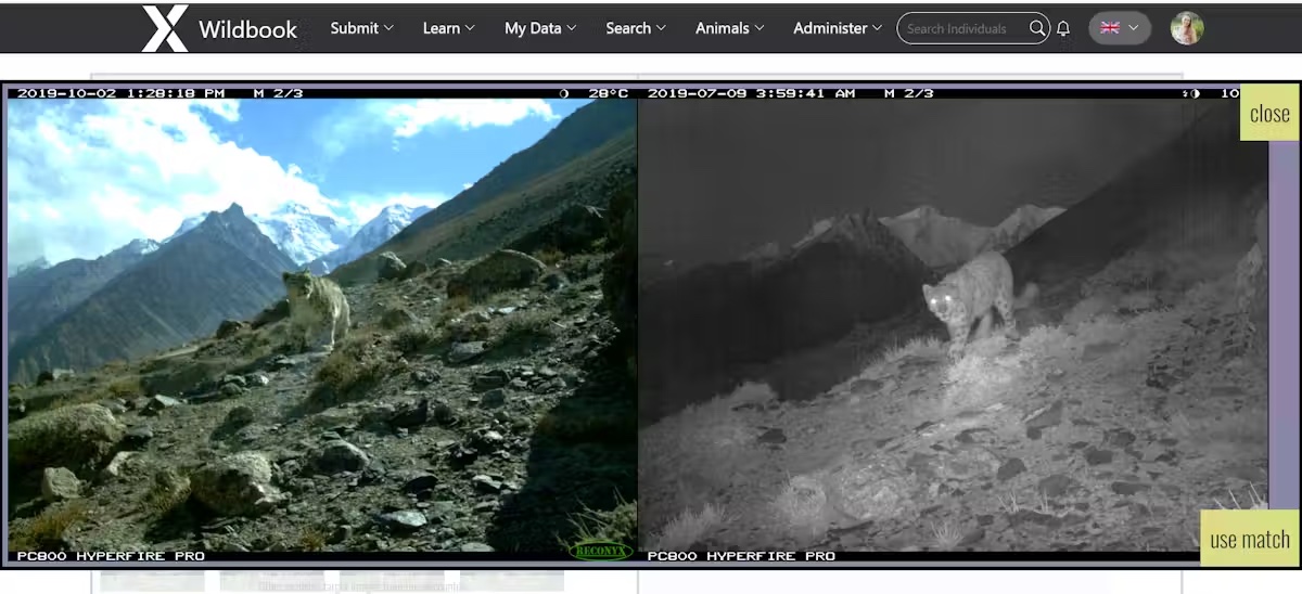 AI can identify individual snow leopards by analyzing their unique rosette patterns, even when poses or lighting vary. Each snow leopard encounter is compared with a catalog of previously identified photos and assigned a known ID if there is a match, or entered as a new individual if not.