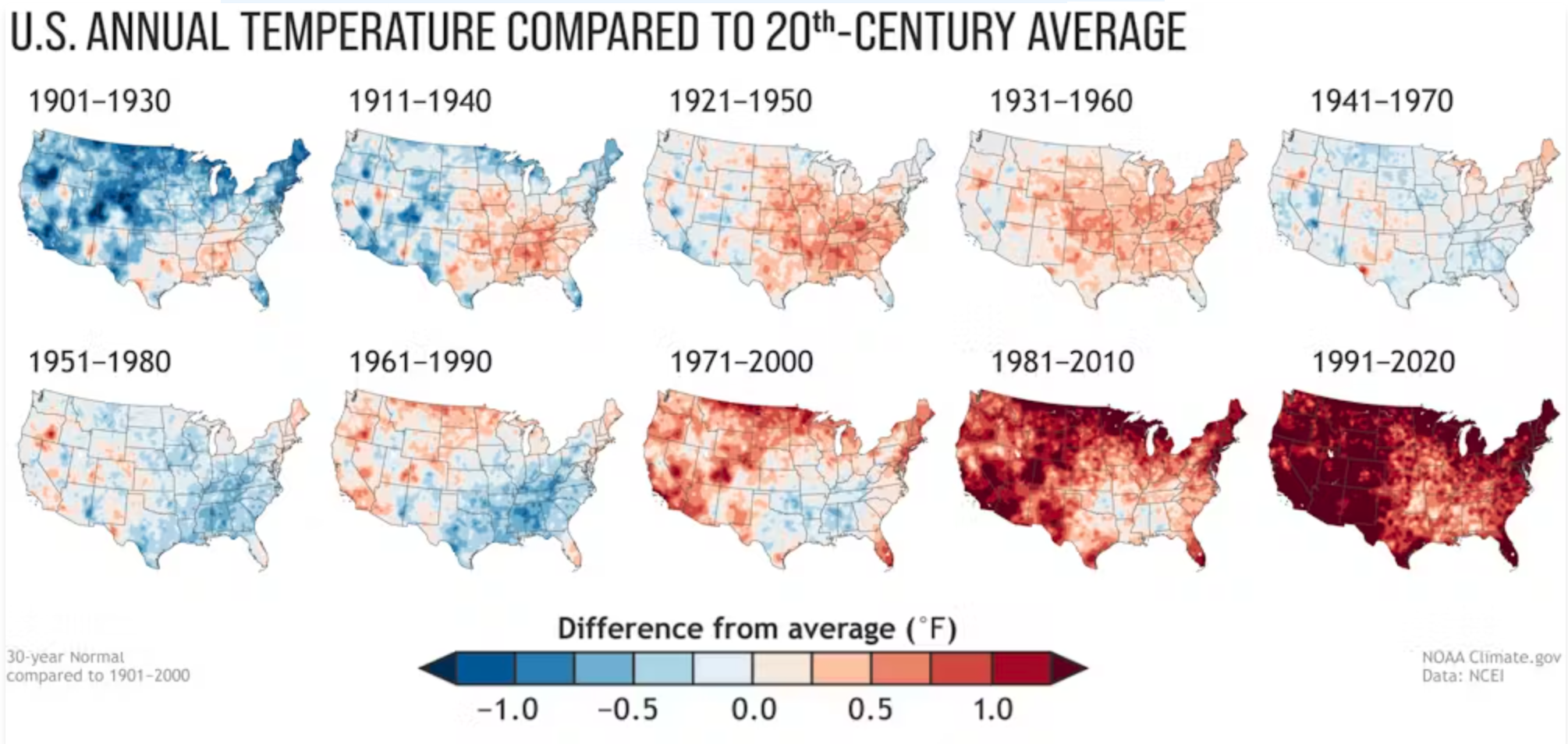Because global temperatures are warming, what’s considered normal is warming, too.