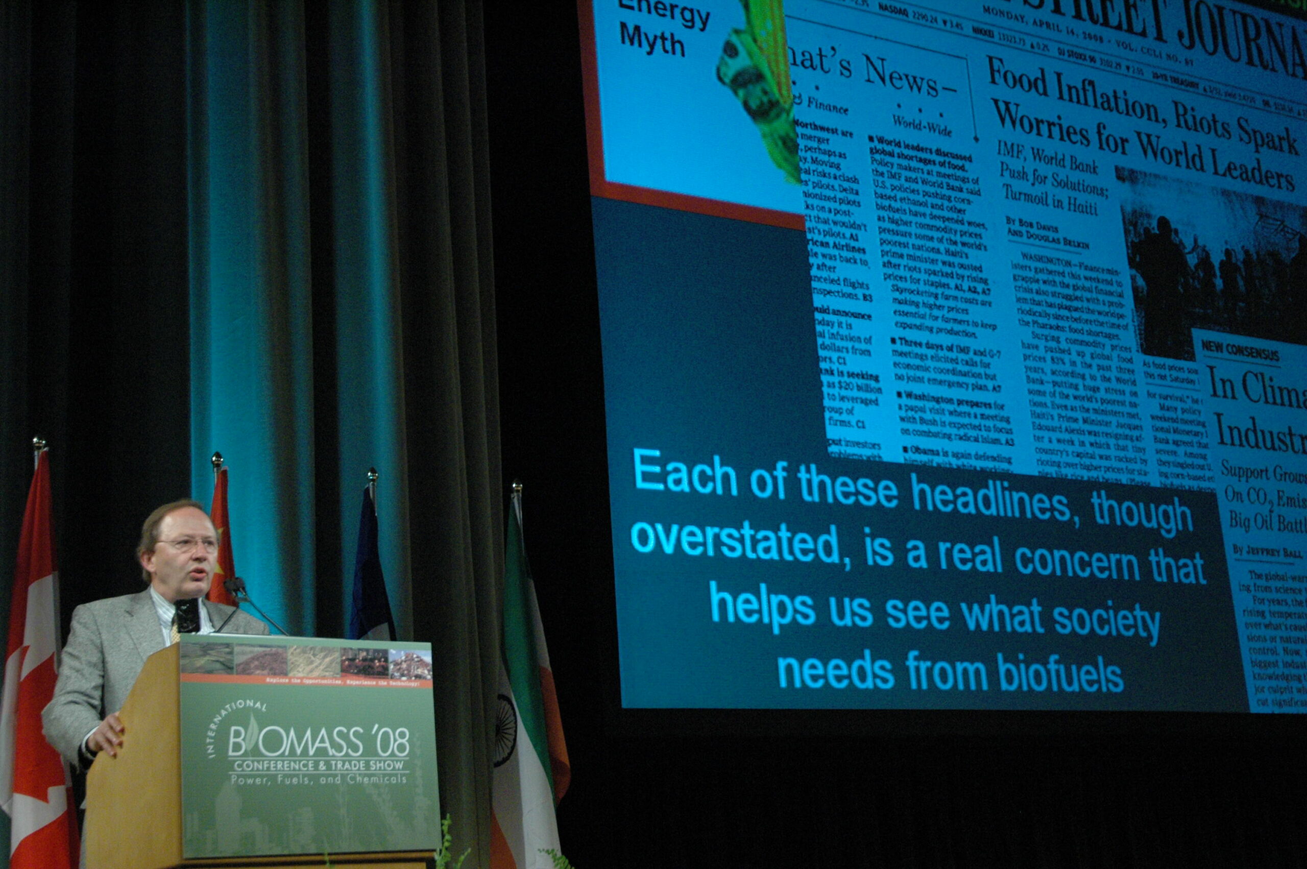 The answer is an unqualified “Yes,” says David Tilman, ecology professor at the University of Minnesota and one of this morning’s speakers. He deplored the polarization of the biofuels debate, pointing out that that biofuels were first touted as a savior a couple of years ago, with public opinion shading into doubt not long afterwards, and now in full-swing backlash mode, with people like the United Nations special rapporteur for the right to food, Jean Ziegler, calling biofuels “a crime against humanity” because it takes food out of the mouths of the hungry according to today’s Times.