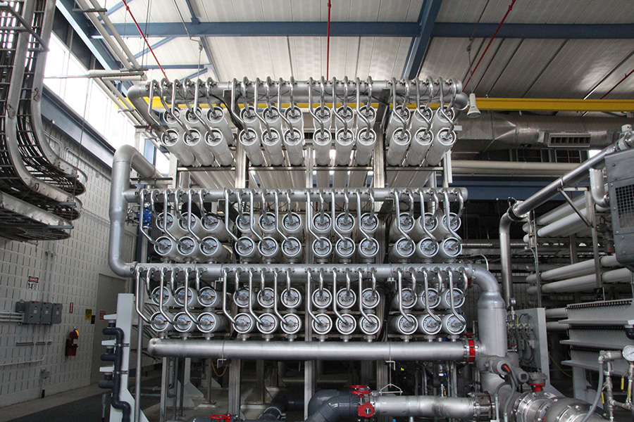 Pei Xu, has been co-investigator on this project since its start. She’s also the progenitor of a NAWI-funded pilot at the El Paso desalination plant. Later in the day, in a high-ceilinged space next to the plant’s treatment room, she shows off its consequential bits. Like Amrose’s system, hers uses electrodialysis. In this instance, though, Xu is aiming to squeeze a bit of additional fresh — at least freshish — water from the plant’s leftover brine. With suitably low levels of salinity, the plant could pipe it to farmers through the county’s existing canal system, turning a waste product into a valuable resource.
