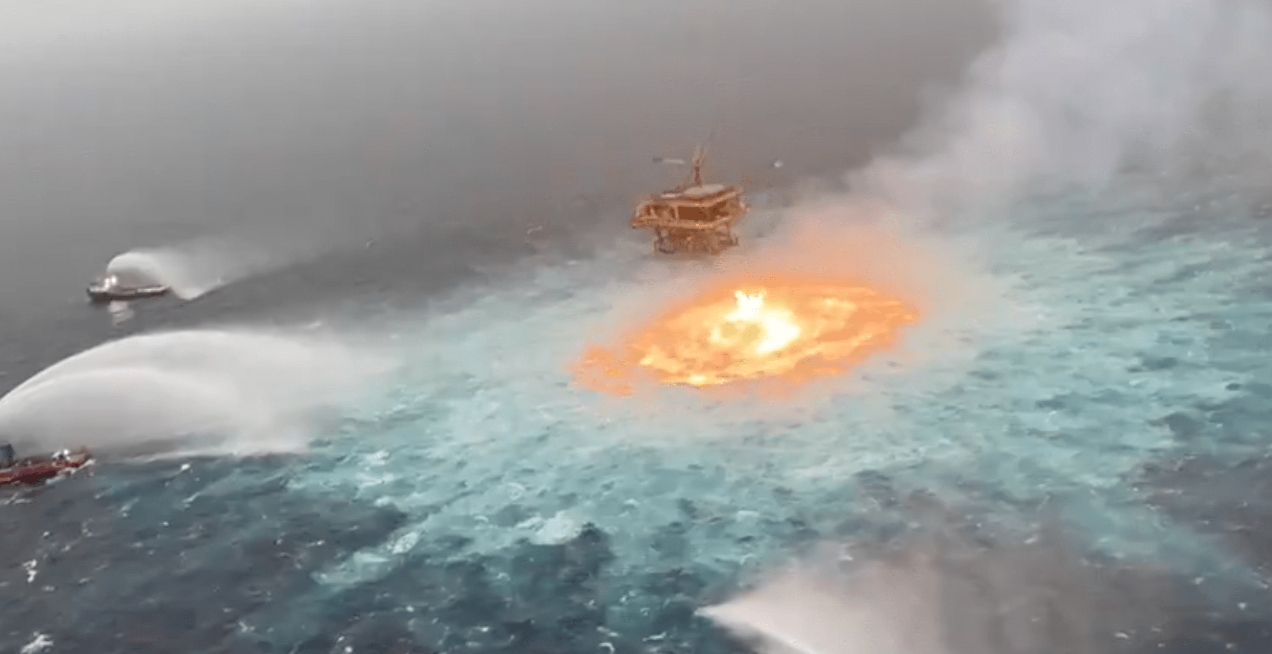 According to Petroleos Mexicanos (Pemex), Mexico’s state-owned oil company, the fire was due to a gas pipeline rupture close to its Ku-Maloob-Zaap oil drilling fields, and was brought under control using water pumps and hoses after about five hours. Reuters reports that the company also used nitrogen to fight the flames.