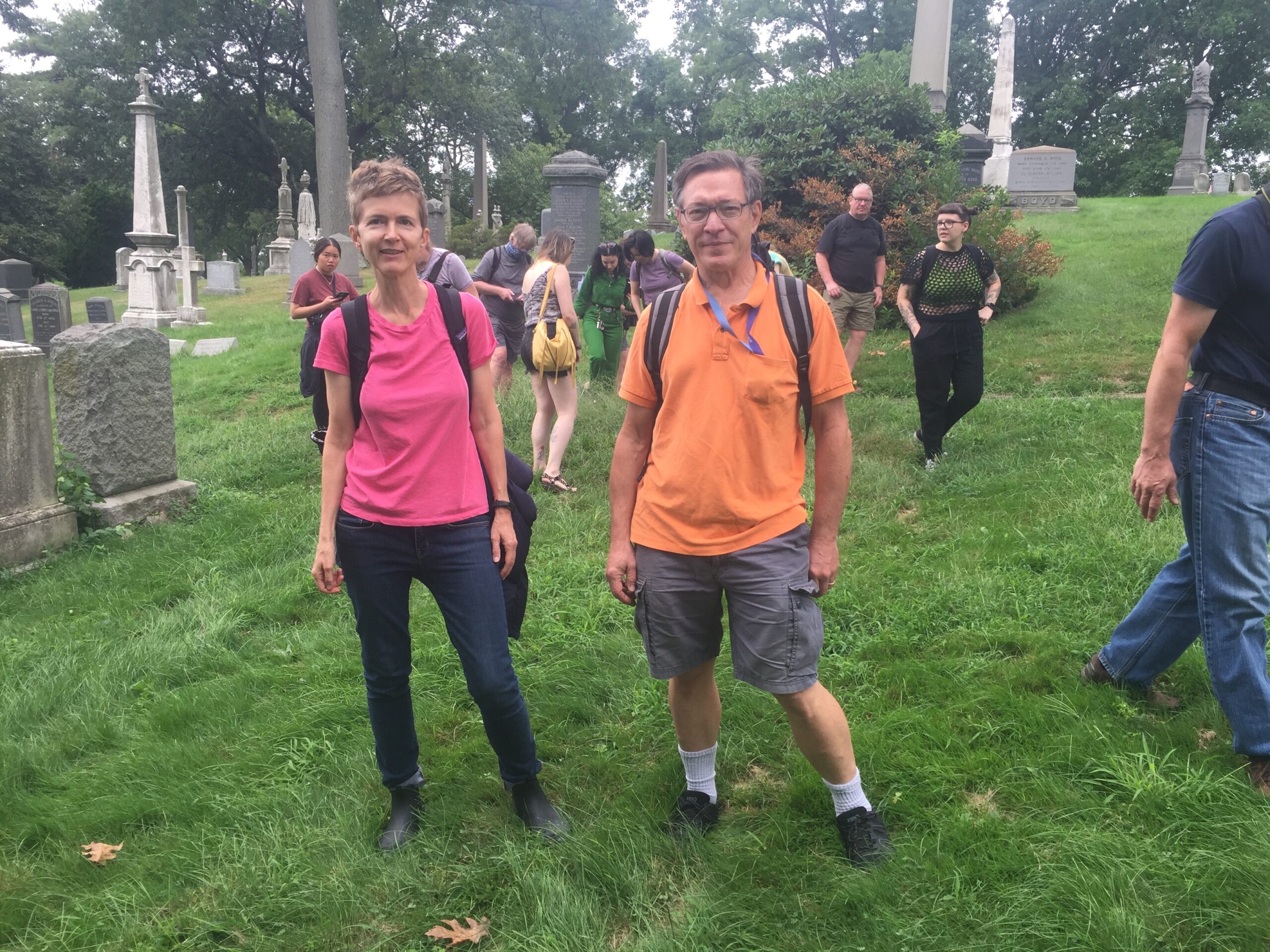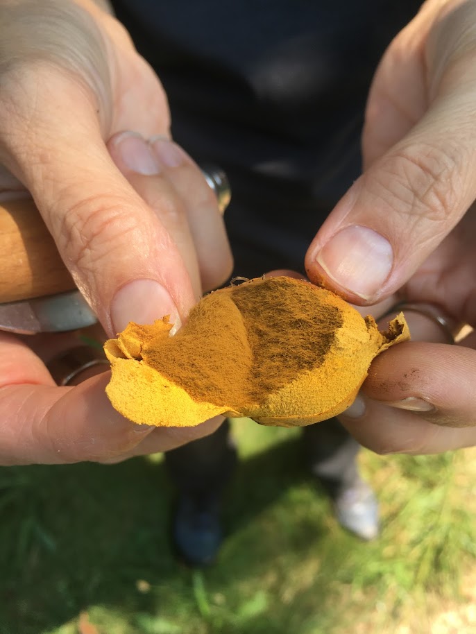 About midway through my walk in New York City’s Green-Wood cemetery with Sigrid Jakob and Potter Palmer, I spot a golf ball-sized orange orb poking up through mown grass. “A yellow puffball! You found it,” Jakob says. It’s a hazy, humid July morning, but the past few days have provided a break from the summer rains. Before we passed under the gothic arches and into the cemetery’s expansive grounds, Jakob warned me that there might not be much to see with the recent dryness. “Today is not the day to look,” she says.