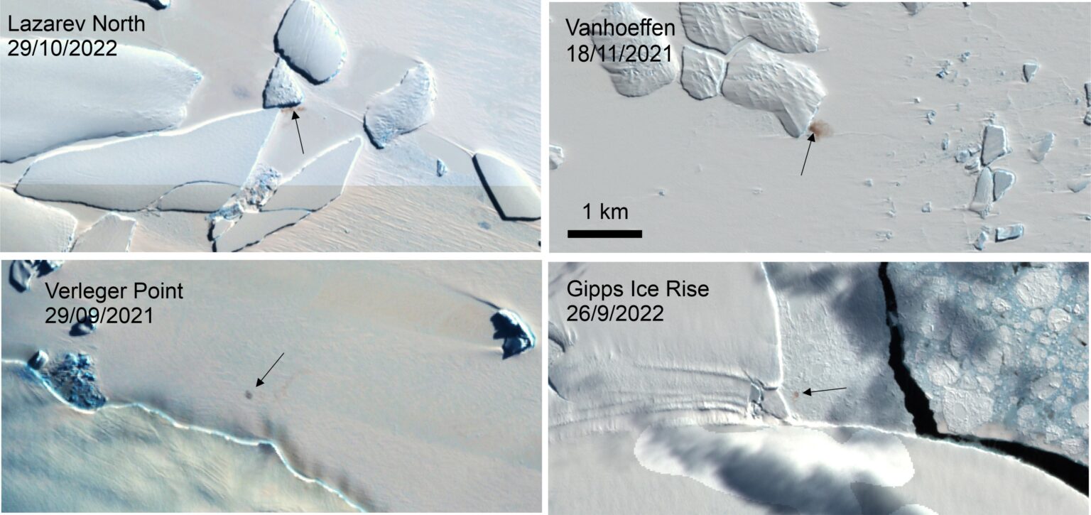 Dark stains on the pristine white ice and snow in Antarctica gave scientists from the British Antarctic Survey the clues they needed to find four previously unknown Emperor penguin breeding sites. The penguins’ guano–aka bird poop–showed up on satellite imagery as a series of dark smudges and allowed researchers to zero in on these new breeding sites. The findings are described in a study published January 20 in the journal Antarctic Science.