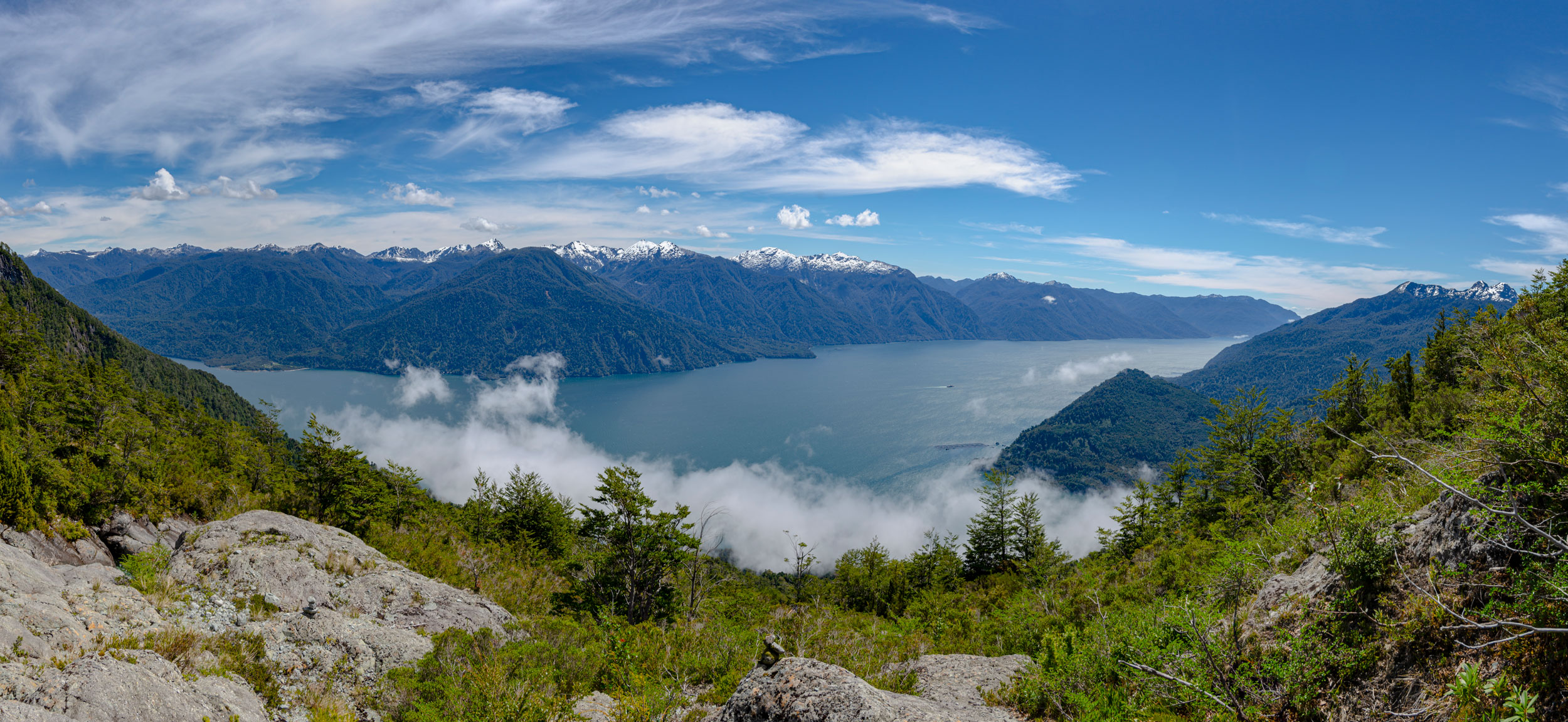 The wooden fishing boat chugs across Comau Fjord, a finger of dark water wedged between the snowy peaks of Chilean Patagonia. A Chilean flag flaps in the wind above a hand-painted black cormorant on the bow. Inside the boat’s cabin, Boris Hernández, a fisherman who is among the few settlers in this remote fjord, peers through foggy windows. With one hand on the throttle, he steers to a spot fixed in his mind but otherwise indistinguishable from its surroundings. He cuts the engine, pulls his yellow beanie over his ears, and steps out onto the deck. A sheer cliff looms ahead.