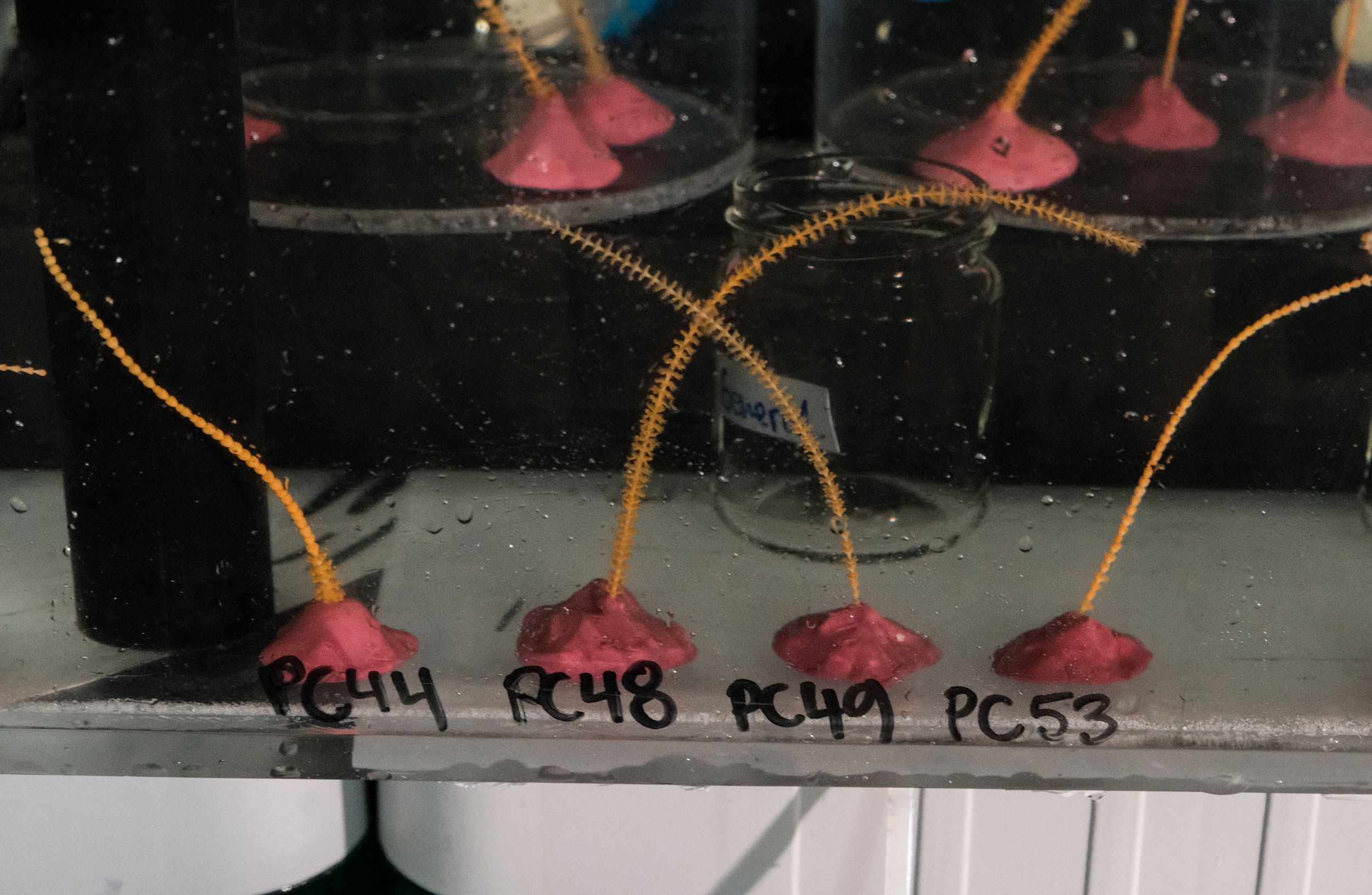 Her first dive in Comau Fjord some 15 years ago was like a “night dive in the middle of the day,” Waller says. She didn’t care that visibility was low even with her headlamp, or that her fingers were numb and clumsy, or that she had only a few minutes of air to spend 30 meters below the surface. “The first time I saw these [kinds of] deep-sea corals that I’ve only ever seen before through a submersible window,” she says, “it was really amazing. You know, I could stick my head in the coral, I could poke the coral, I could take the sample. That’s something you just can’t do with a robot or on a TV screen.” And accessible D. dianthus samples provided a unique opportunity—bringing live specimens back to the lab to watch them spawn.