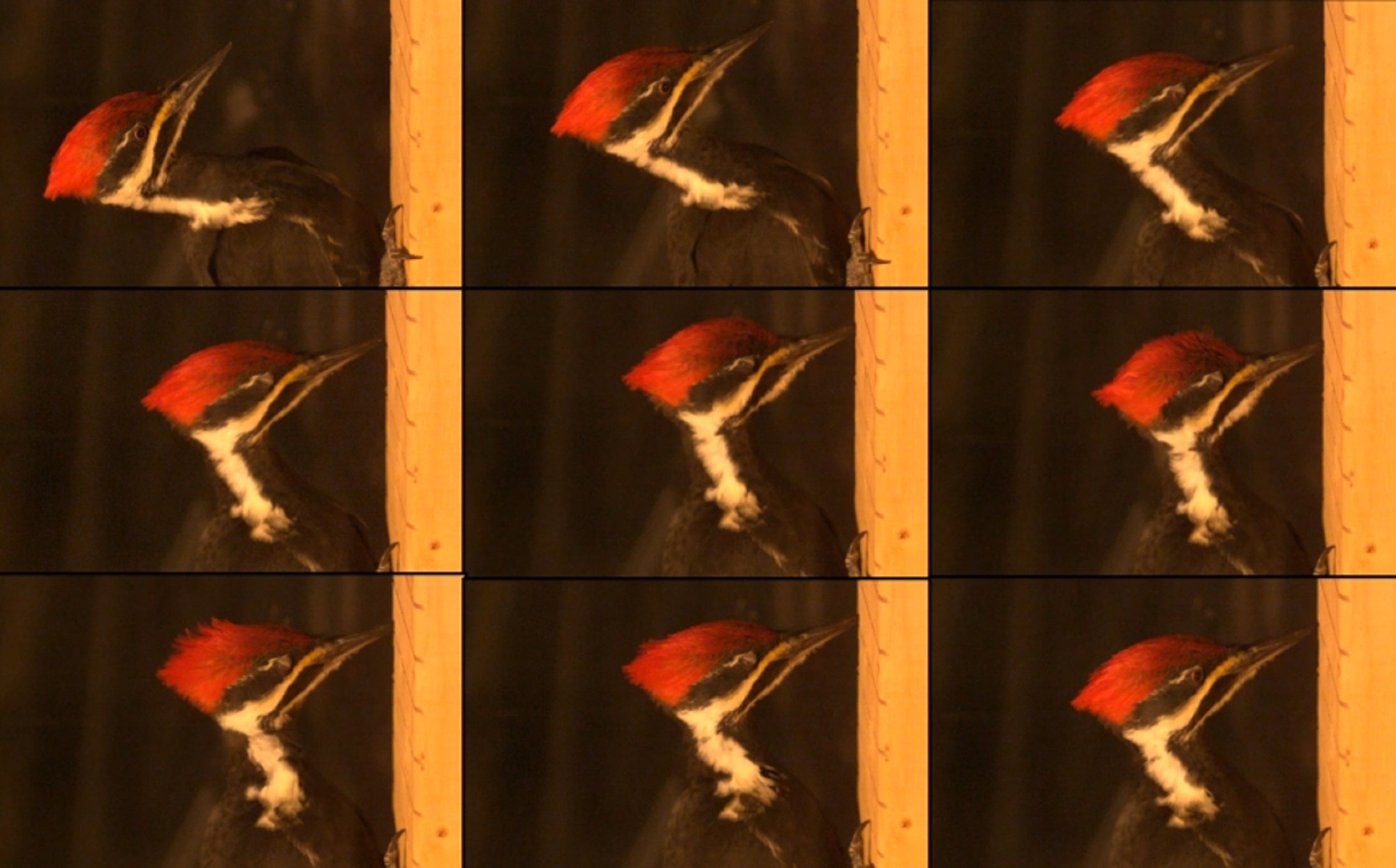 To get to the bottom of the mystery, the researchers captured more than 100 high-speed videos of six individuals from three species pecking as fast as about 16 feet per second. The birds—black, pileated, and great spotted woodpeckers—covered a range of body sizes and geographies. The team tracked the movements of several points on the beak, eye, and skull to understand the movement of the braincase.
