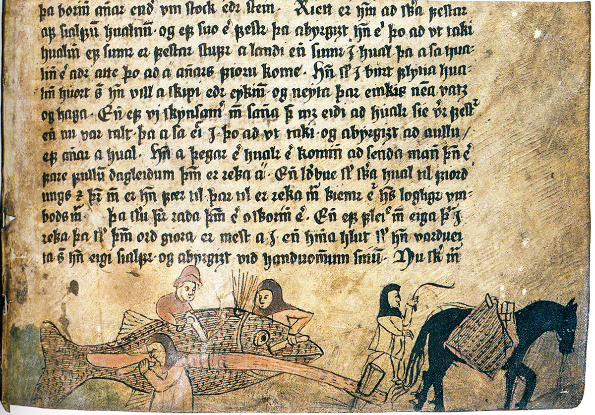 Even with government regulations, though, whale hunting was a fraught enterprise. Spearheads were expensive, crafted by Icelandic smiths using iron smelted from deposits in bogs. One fisherman in the literature grew so frustrated at losing five spears in a single day that he gave up hunting altogether. And scavenging whales that beached themselves or turned up dead on shore still caused drama. At least five sagas tell stories of fights breaking out over the rights to stranded blue whales.